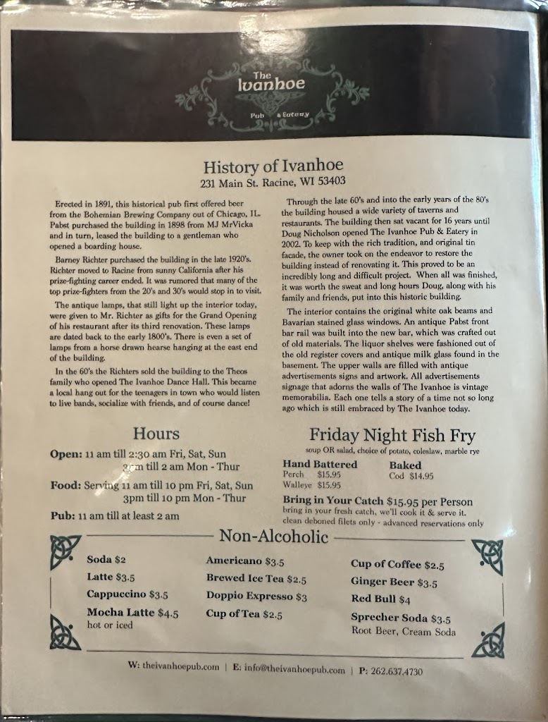 Worst bloody Mary's we have ever had. We came into town for our mom's Celebration of Life and wanted to spend some quality time with friends and family. We used to spend time at ivanhoes and the bloody were the best. Well, no more. None of us drank them. When we told the server how awful they were, we were not comped for them. She just took them away and quit serving us. We had to go up to the bar to pay our bill as no one ever came back, even to give us the bill. We know the owner and are very disappointed in how the service here has regressed. We won't come back again and have advised others of the change in service there. We sure hope the owner thinks about heading back there, because things sure are not good. Sorry, Doug, we were going to have lunch but after bad bloody Mary's and burnt cheese curds, we went elsewhere. Your place needs help.