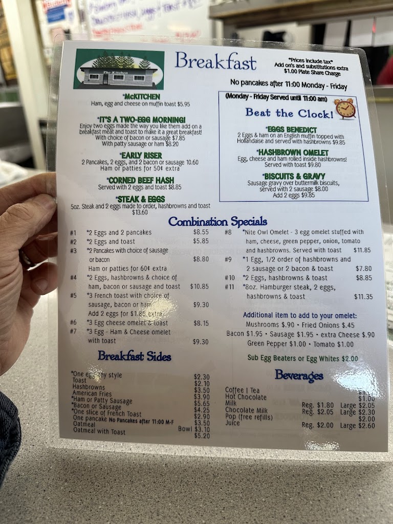 If you are looking to have the best food of your life for the best prices you have seen since the early 2000s this is the place!!! My fiance got the night owl omelet which was huge and i had the eggs benedict and we each had 2 cups of coffee for $27 😱 It's hard to get 2 lattes for under $20 in this economy let alone a whole meal for 2 and 4 cups of coffee!! The services was extreamly fast and the staff was very kind and put everyone in a good mood with their vibrant personalities you can tell the kitchen values their employees and their individuality aswell as putting the customers and quality above all else so shop local and come to the kitchen! Just bring cash as they don't take cards but there is a kwik trip down the road with a atm if you forget like us 😅