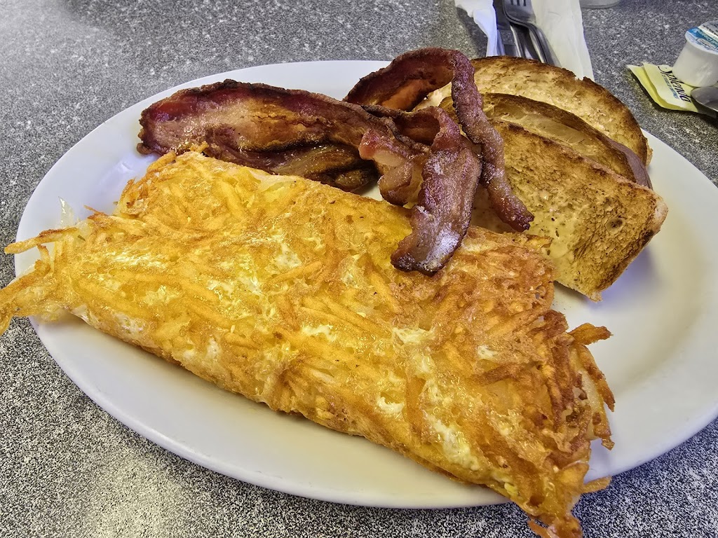 We absolutely love this place. Super laid back environment, good food, and low prices. Lots of old timers and workers frequent this place. You can feel the community when you eat here. 10/10. Also try the rolled hash brown omelet!!