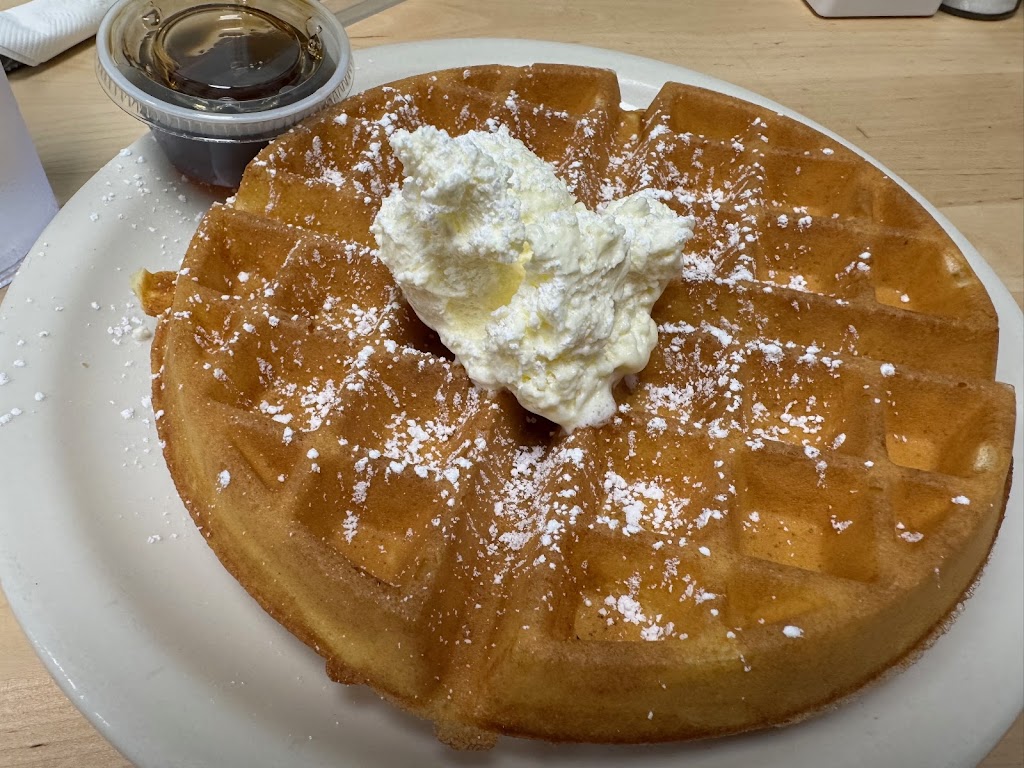 Ordered a Belgian Waffle, Pancakes with Eggs, and some BlueBerry Pancakes. Everything came out quickly. Hot, and Tasty. We were expected that the BlueBerry pancakes would have had the blueberries in the pancakes. Also, the picture of the Belgian Waffle showed whipped cream, and some fruit, but the what came was just plain. (not a big deal, just different than shown).