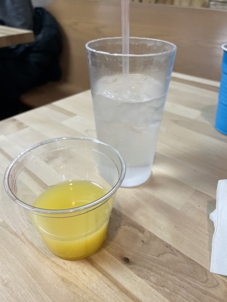 Inside we got greeted by a friendly host. Got us to a table towards the back. There were fans blowing, so we ended up moving tables. We got waters, menus, and placed our drink orders. The service was friendly and efficient.