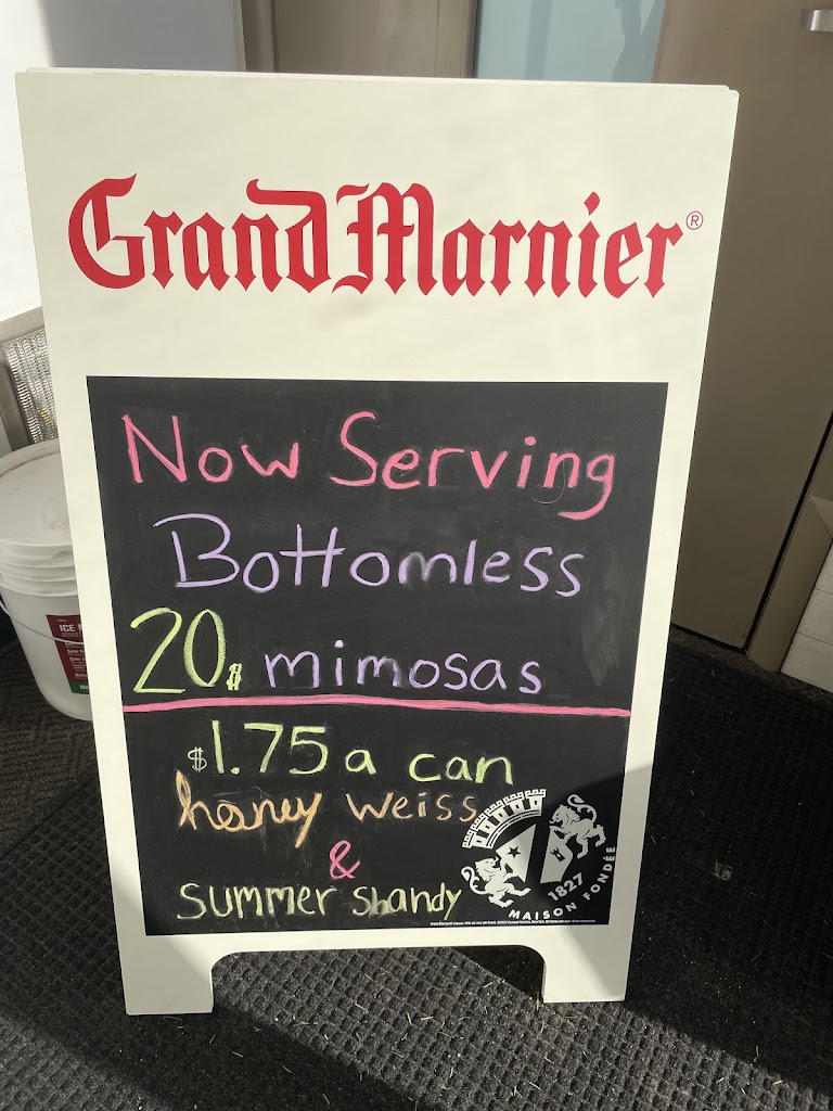 What a find! My new boss brought me here for breakfast. As you can see, they have bottomless mimosas. Great food. They are super-friendly! The portion size of the pancakes is enormous. All other portions are just huge. LOL. They even have a slot room. Just incredible.