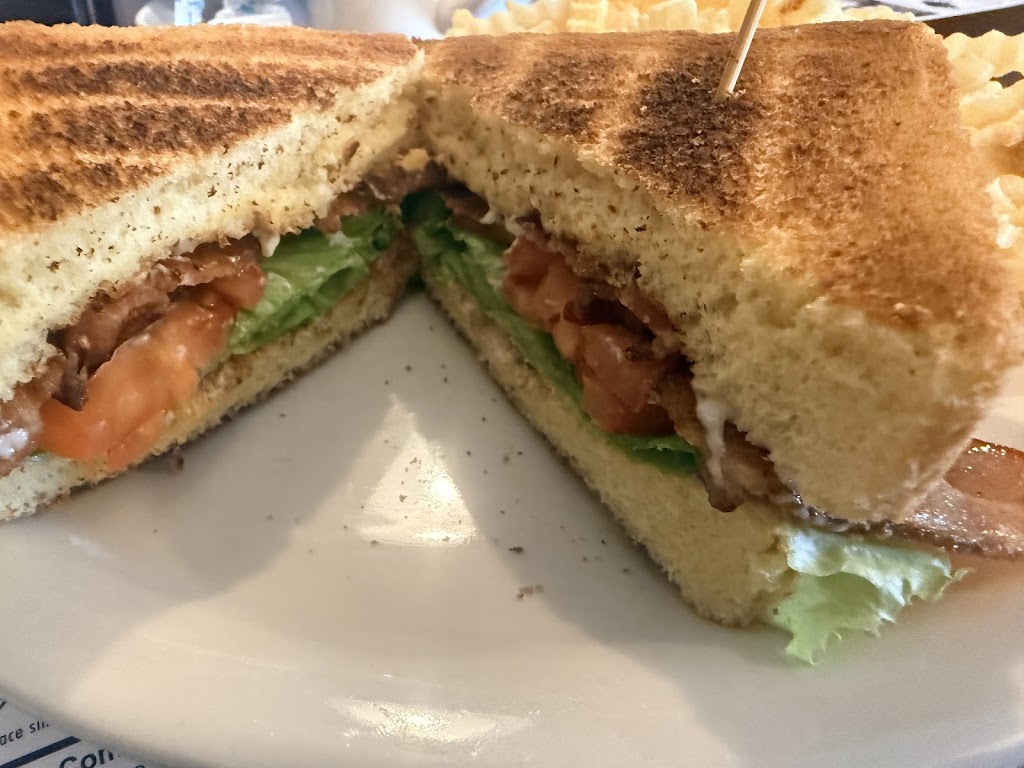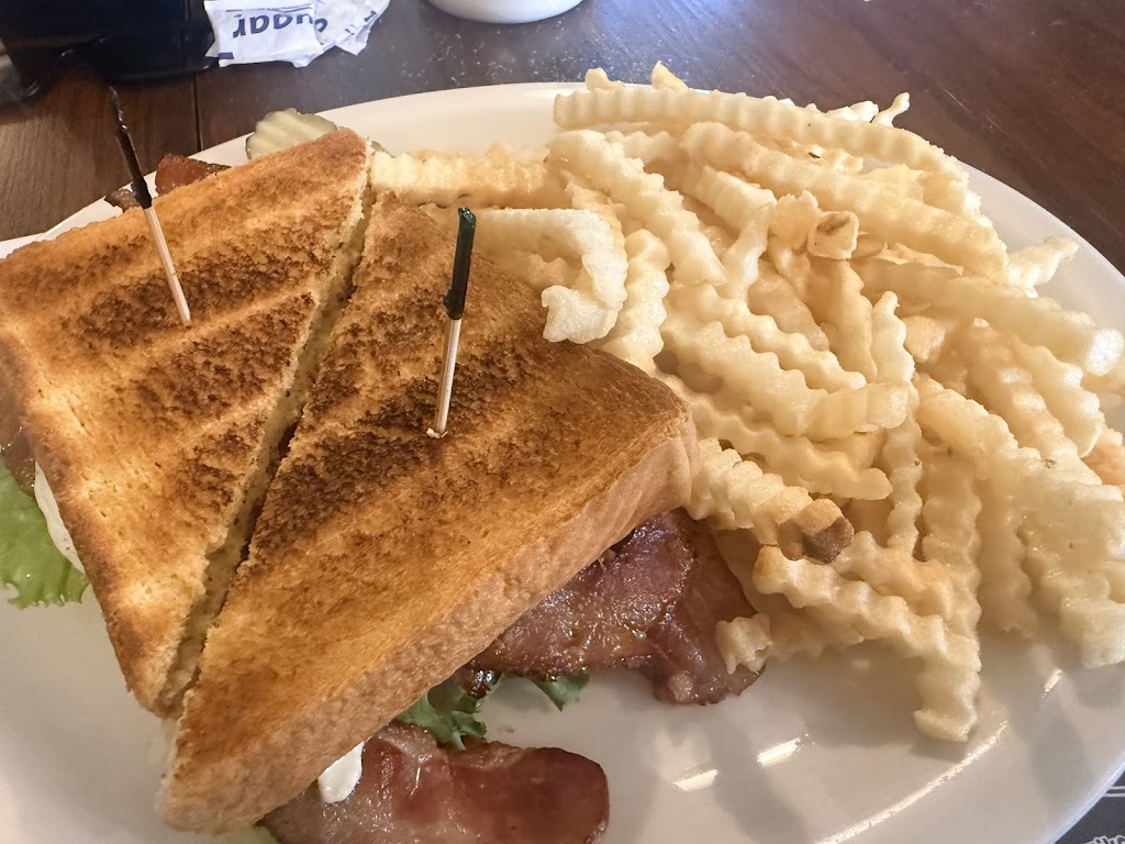 Cozy diner with a quiet atmosphere. I got the blt. it was much bigger than i expected and most places skimp on the bacon but this place didn’t. I would return if in this area again. Prices were very reasonable