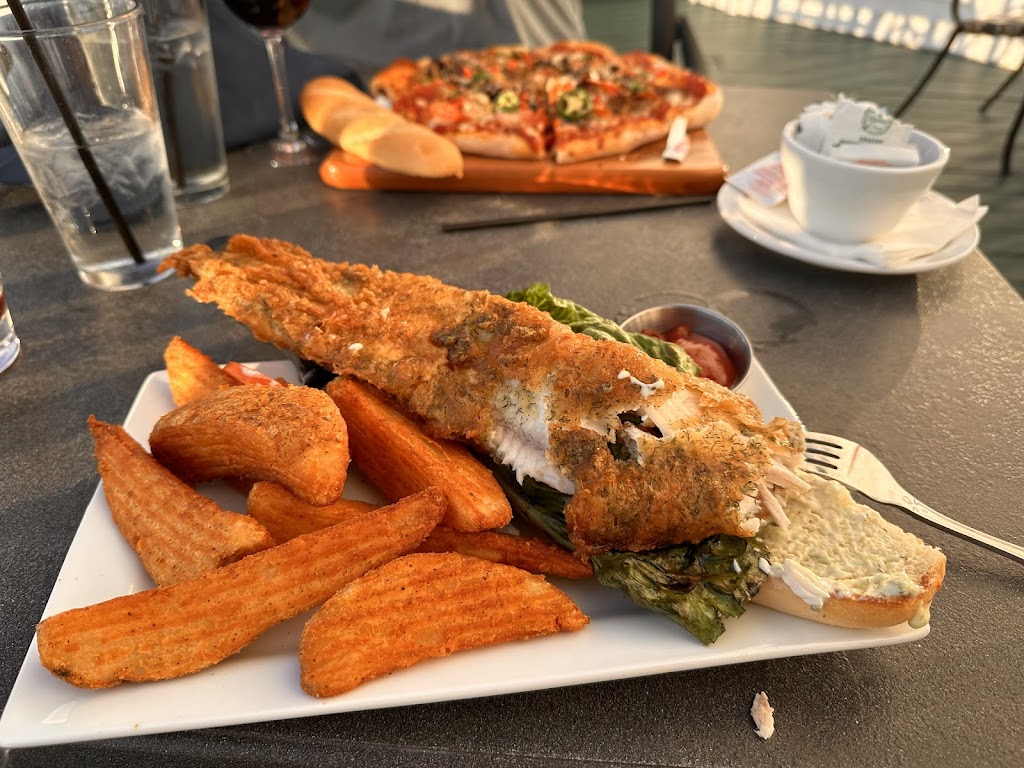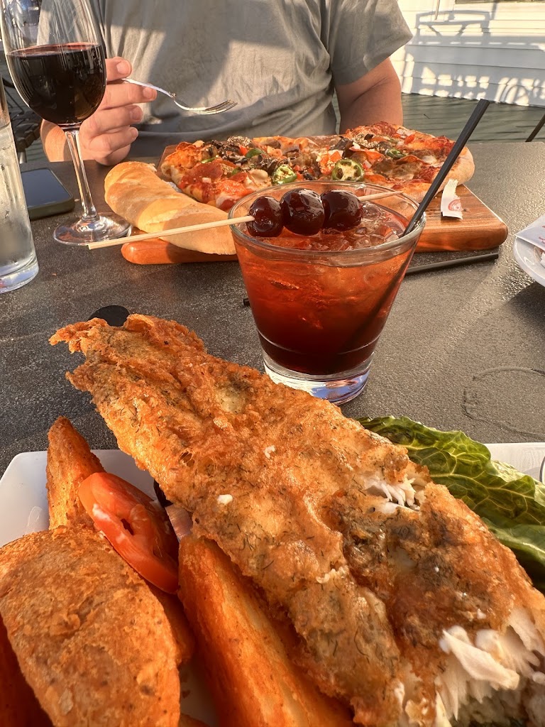 The food was incredible. Be patient with the food as it so fresh. The drinks were incredible. Best whitefish I’ve ever had. The outdoor deck dining was fabulous on a sunny night watching it go down. Indoor dining also had beautiful views. Thank you to Sarah and Rena for waiting on us.
