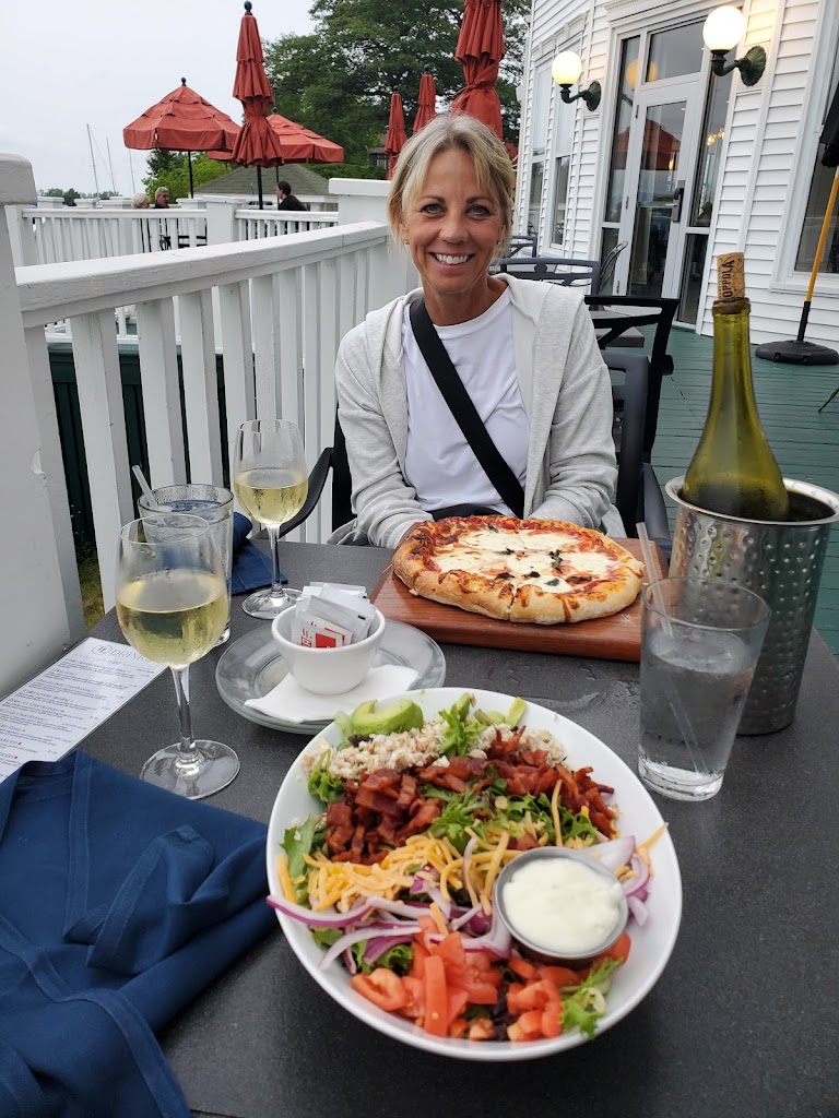 We had a bottle of wine and a Cobb salad and a pizza. Both the salad and the pizza were awsome. And the view? The view was great as well.