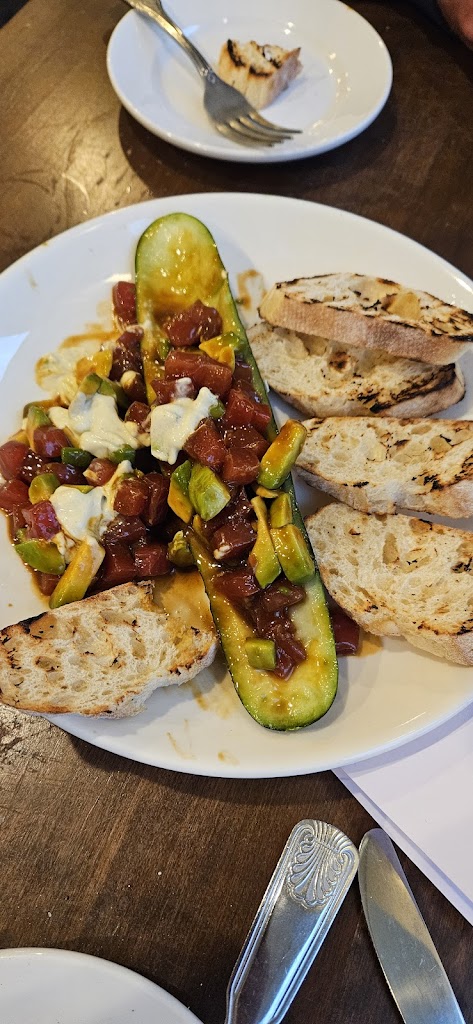 I'm still trying to process how awful this meal was. We ordered the tuna tartare starter and it was inedible. The dish consisted of heavily soy sauced tuna and avocados, served with crostini. Not appetizing at all. The porterhouse steak for 2 was not much better. The wild rice pilaf was also inedible, as it was completely undercooked and lacking in flavor. Uncle Ben's would have been better. The asparagus looked and tasted like it was microwaved. Overcooked, no seasoning, and came out with a side of butter. The steak was fine, but for $65 a bit pricey if everything else was unfit to eat. If this expereince had an upside, it was our server, Sofie; she was on top of it and I understand none of the food prep was her fault. She was prompt and courteous. Inpsite of her excellent service, we don't have plans to ever return.