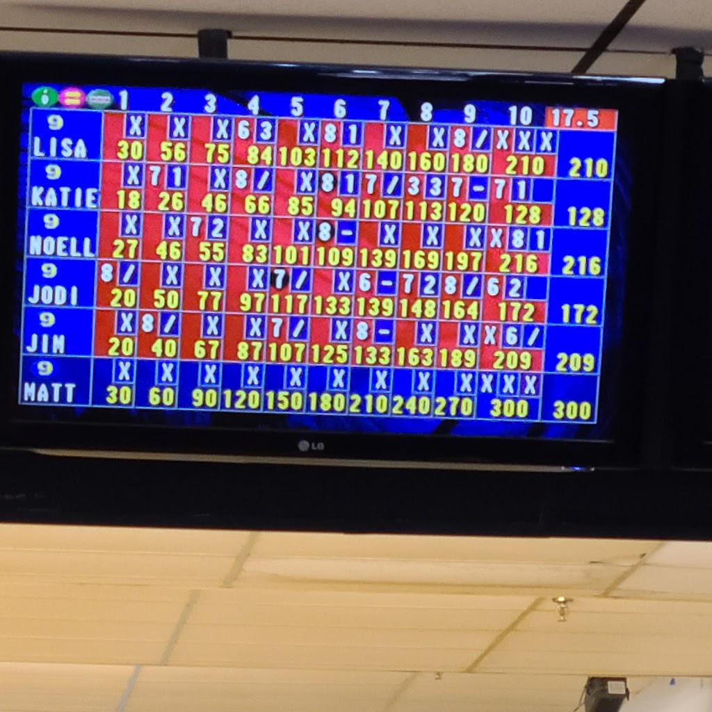 Lane 13 was not working right. Had to manually edit false scores. It would sometimes not recognize a throw and not count the pins. Finally, it wouldnt work at all. So we were moved to lane 17, which also at some point didnt respond anymore leaving pins on ground. Staff had to go to the back to get it working again. Very frustrating and annoying. Food was ok. Staff very friendly, did what they could.