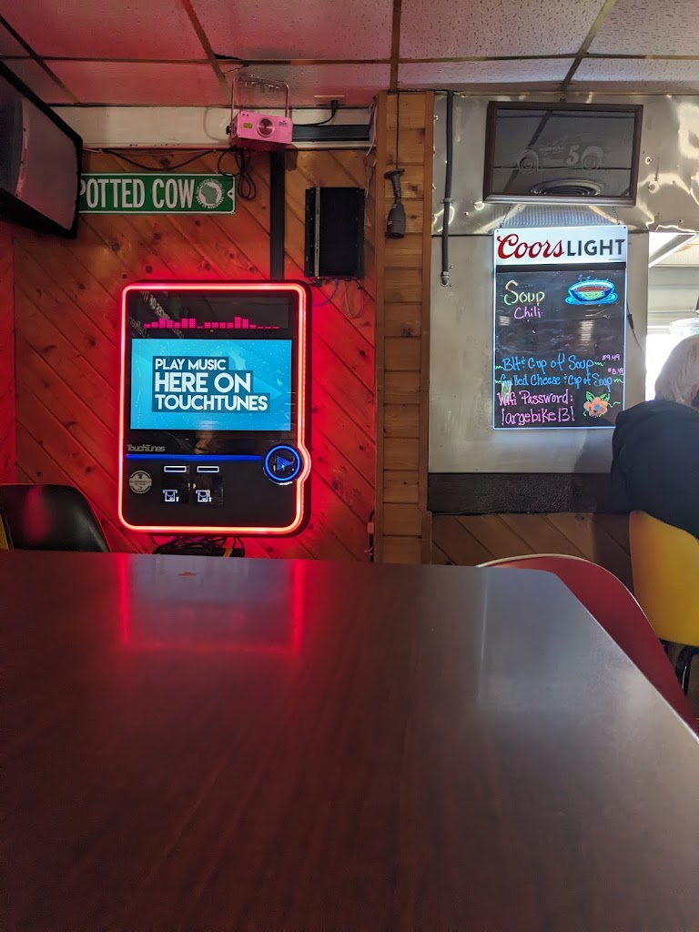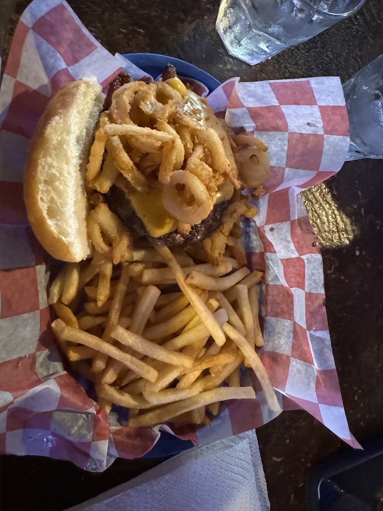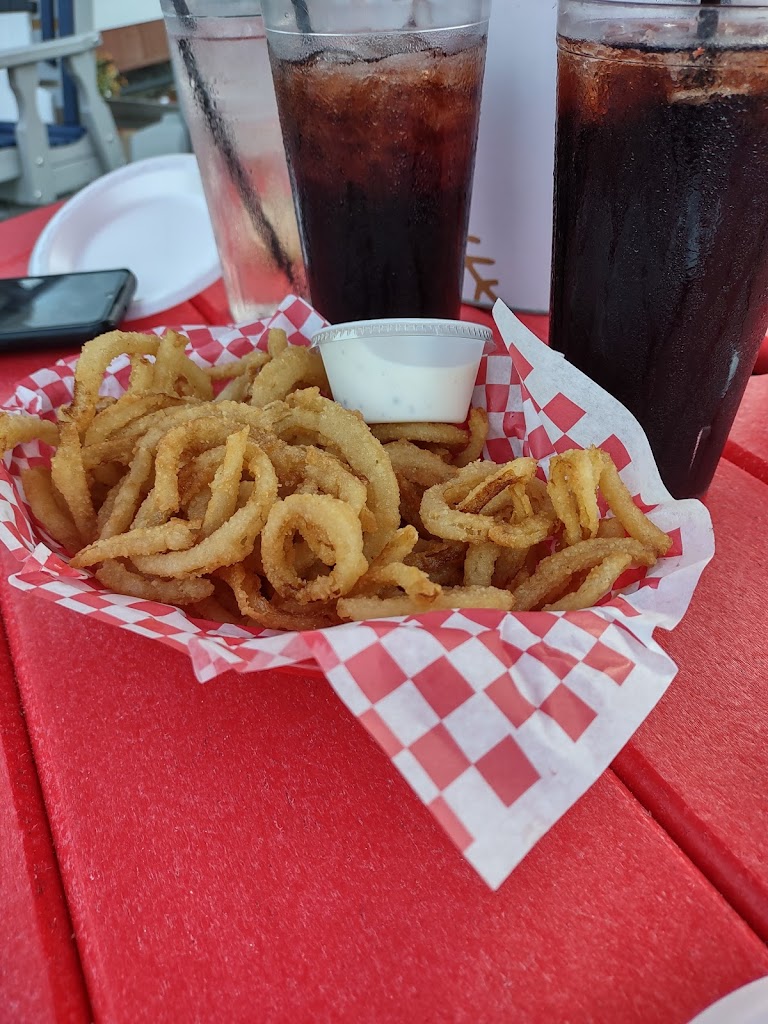 Great burger excellent fish fry outdoor seating indoor seating some of the waitresses are not putting much effort in their work but we tip accordingly great prices for their food and drinks