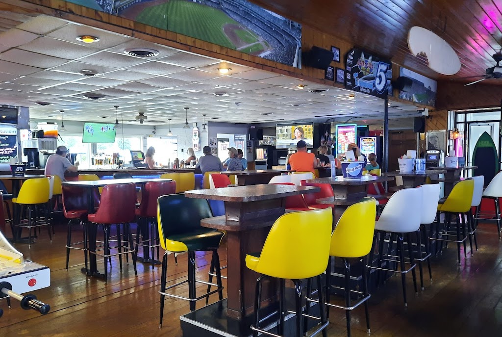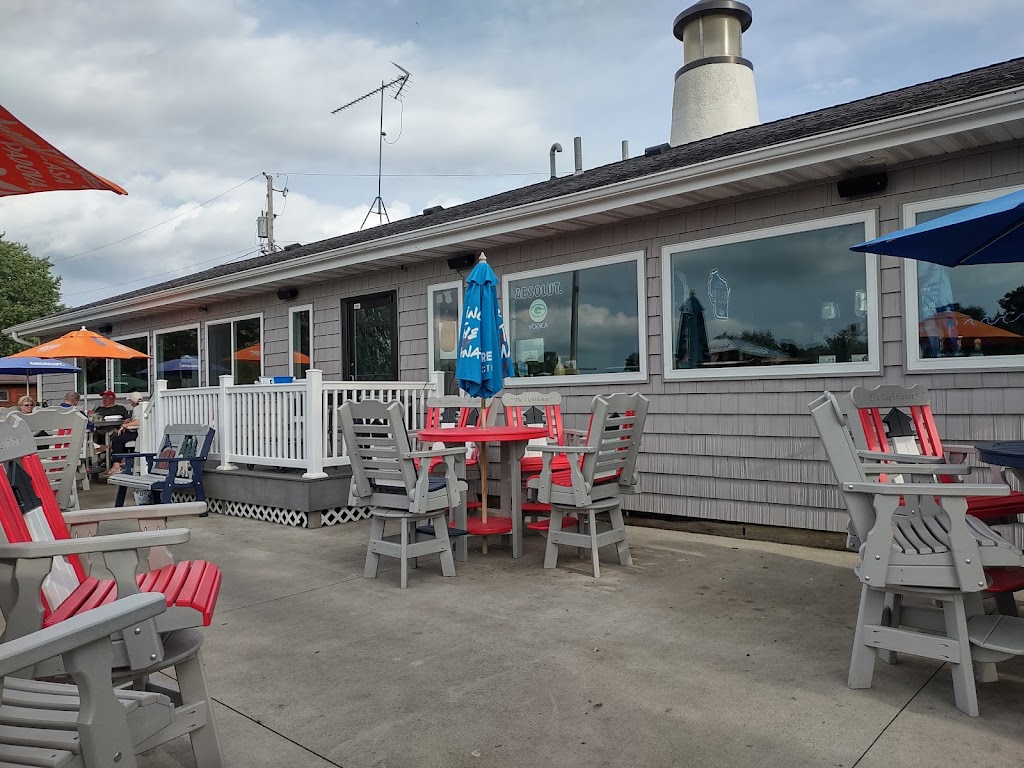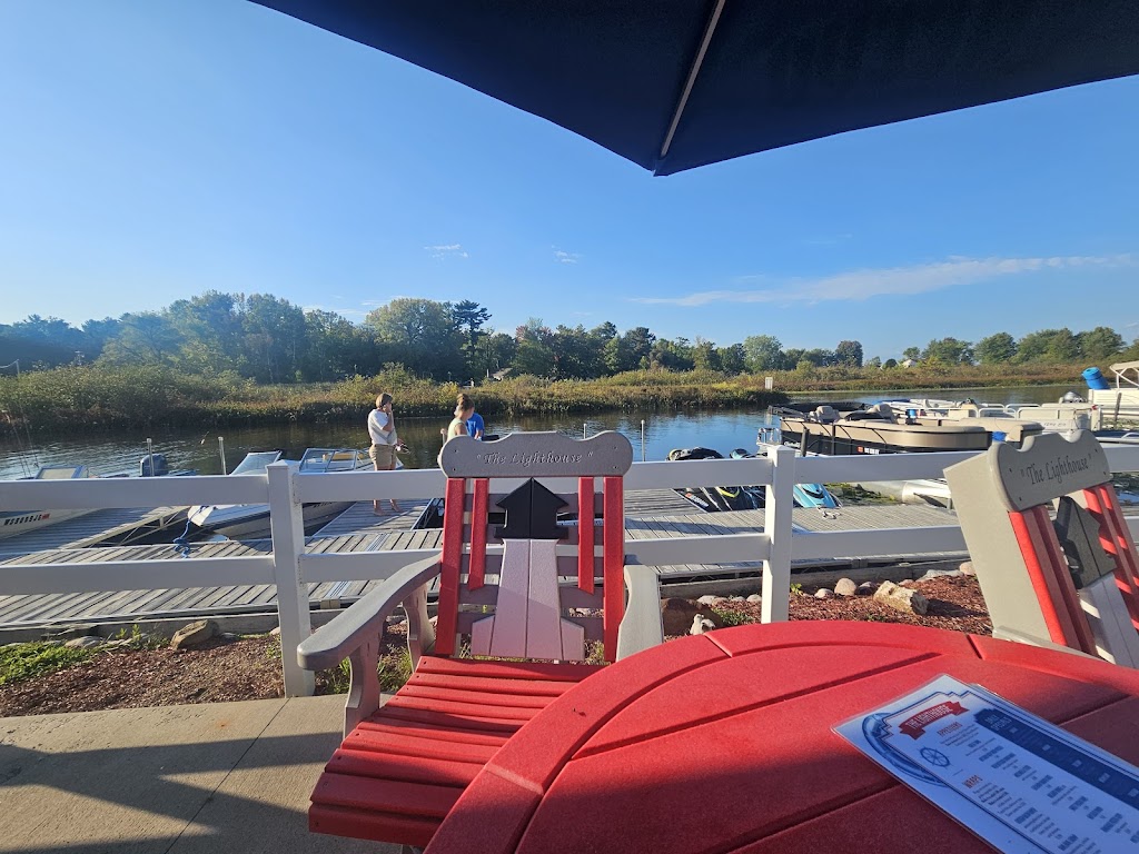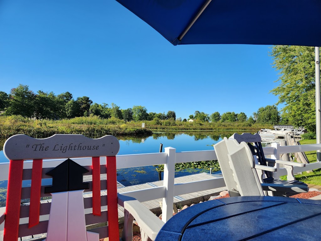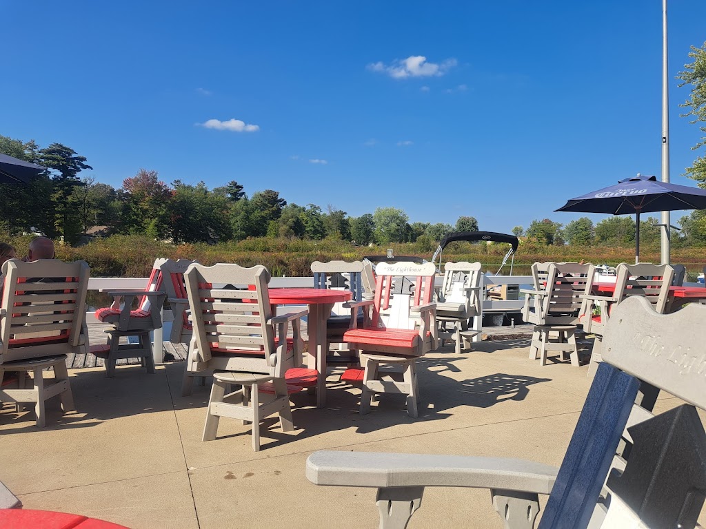 The Lighthouse has some great food and awesome employees. They have a patio in the back which over looks the river which is within 3 feet away from the patio. The patio furniture and tables are very comfortable. Very peaceful relaxing place but u can also watch people dock to come have food or grab a beer or drinks. The inside has a nice bar and tables for dining. They play sports on the TV but have live music on some days.