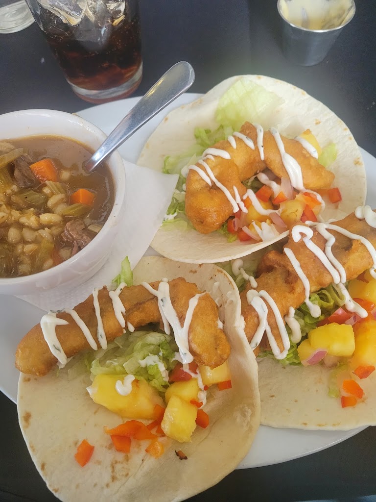 I got the pretzel as an appetizer, was really good. The fish tacos we good to. We will be coming back:)