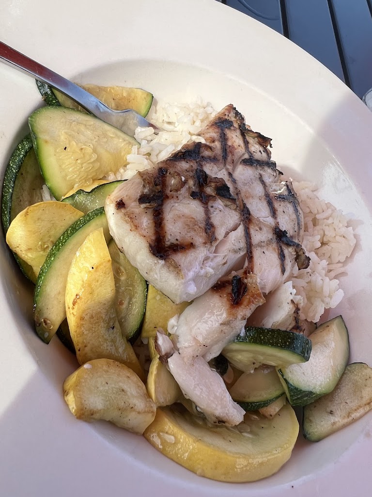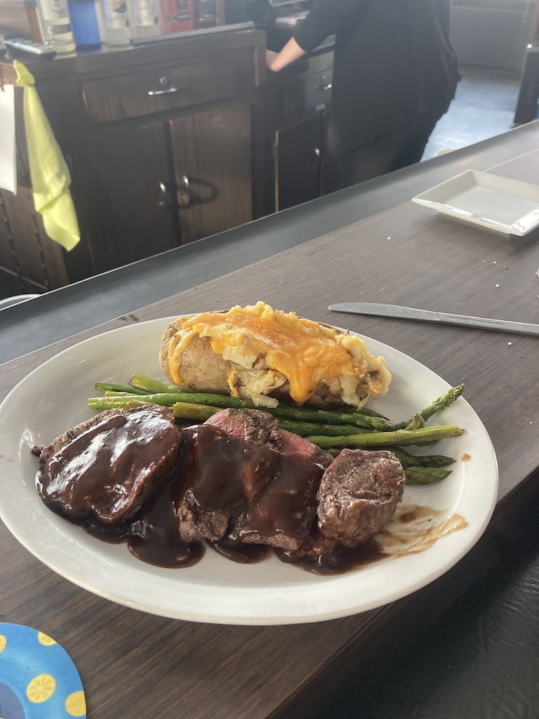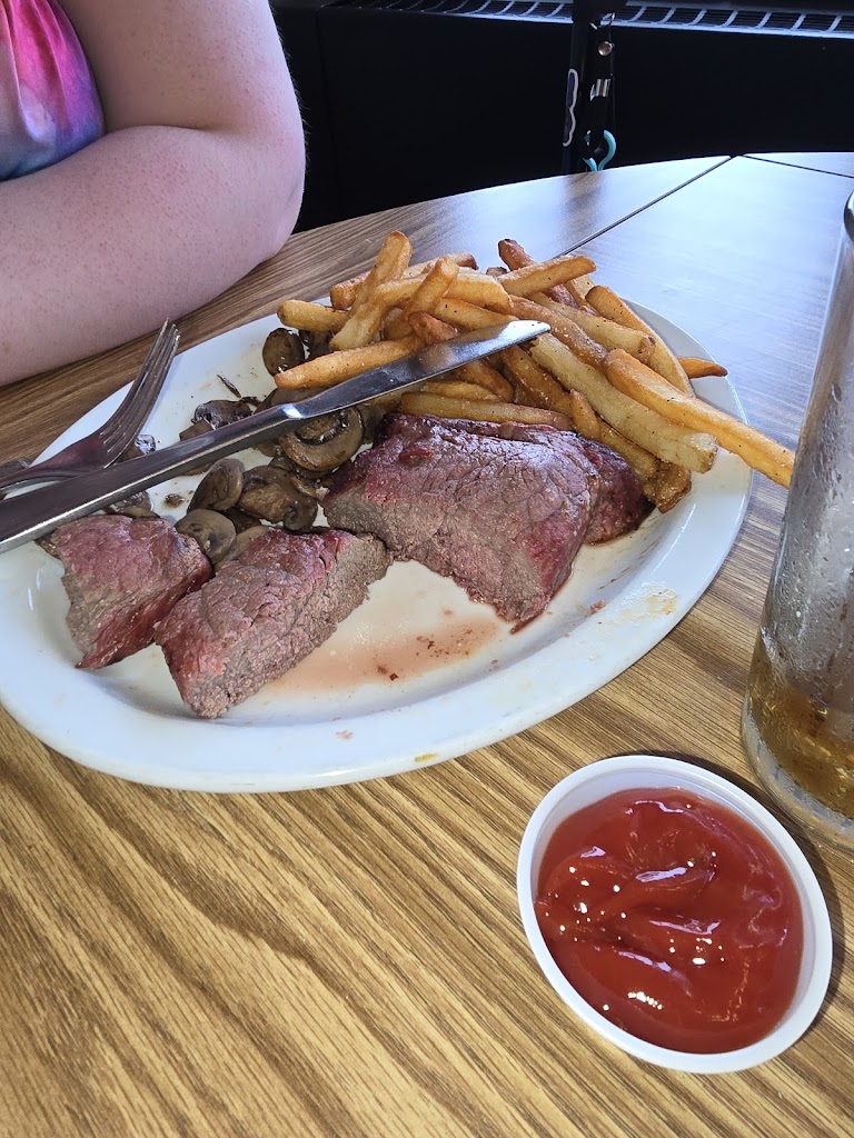 My salmon was pretty good. The salad bar had a large variety of toppings. The potato rings were amazing. My husband had steak and it was slightly overcooked and FYI, they don't have steak sauce. The view was nice with the water. Reasonably priced and my husband and I both enjoyed our meals and will be back.