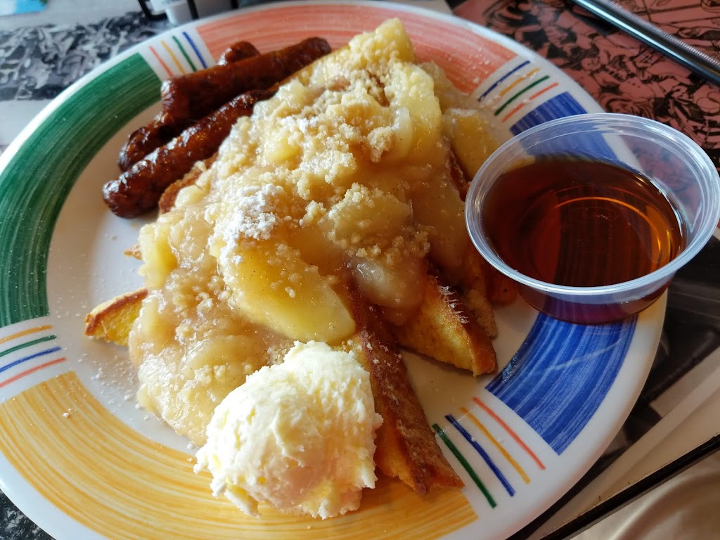 The food was all fresh and hot when served. Nothing outstanding really, although the Apple Crisp French Toast was delicious and quite a novel entree. I chose not to dump the maple syrup over it, and it turned out that it didn't need it. We had lunch out on the spacious patio, and breakfast inside the restaurant. The views and the breeze elevated the experience.