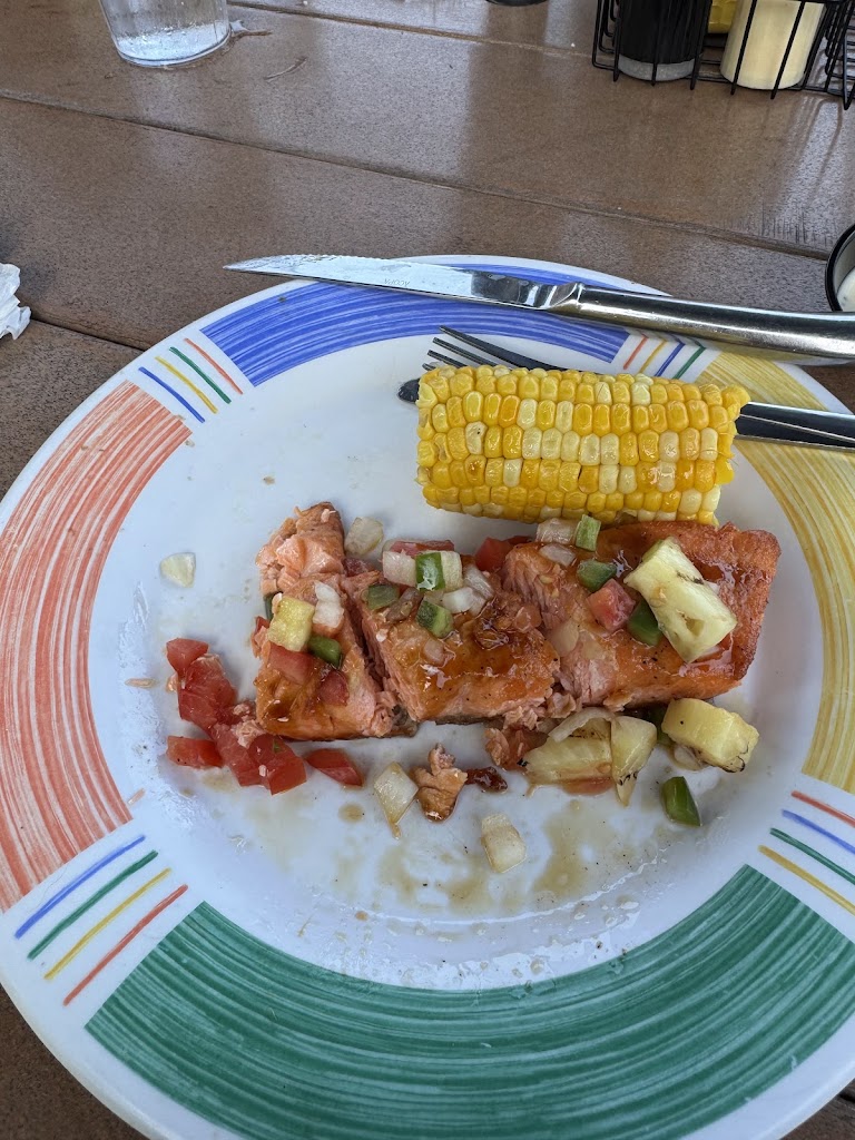 $42 for salmon the size of a chicken figure and a 3rd of an ear of corn. Boo! Won't be back.