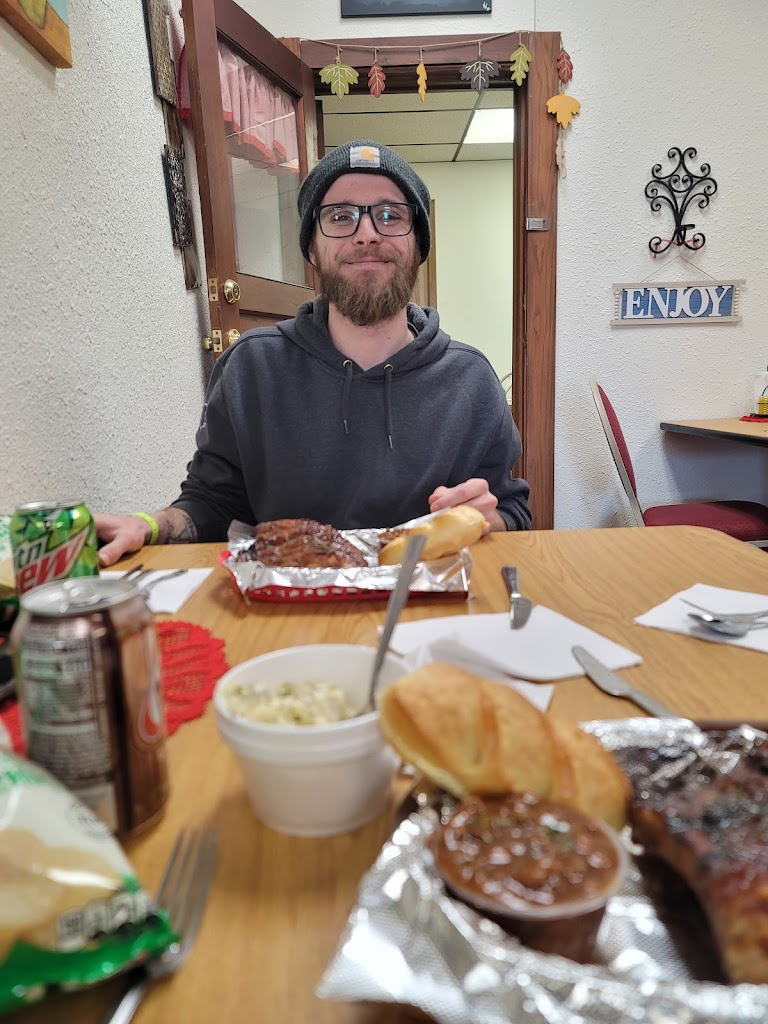 What an amazing lil place❣ The people are very welcoming when you walk in. Their menu all sounds good but when we went they had food strictly off the grill😍 so we had some INCREDIBLE ribs that you could literally pull the bone out of clean. That and cowboy beans, a side of your choice, a bag of chips, and a drink all for $15❤ It was so filling I had to take leftovers home and didn't have room for desert sadly. The banana cream pie sounded really good. Definitely recommend💗
