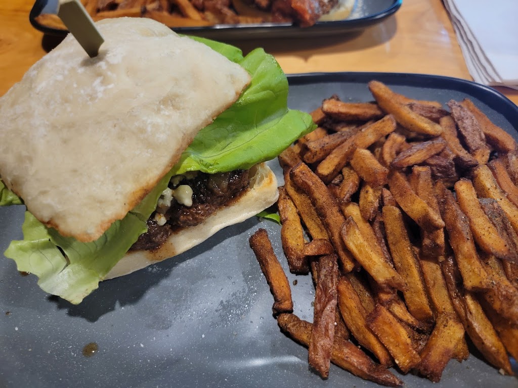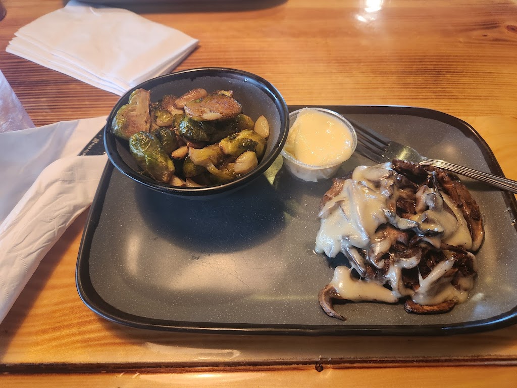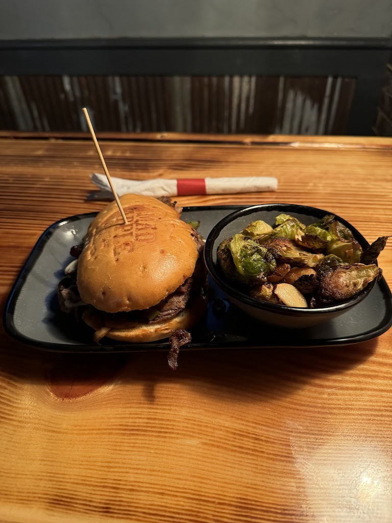 The food was pretty alright. It wasn't amazing, but it wasn't bad. I think the burgers could have used more seasoning. The garlic roasted brussel sprouts were perfect tho! I got their Looney Shrooms and Swiss burger (no bun), and my friend got the Morning Madness burger with fries. Service was slightly slow but everyone is understaffed right now so can't complain too much about that. The inside is pretty cool looking and the women's bathroom had free sanitary napkins and floss picks which I've never seen before and think is amazing.