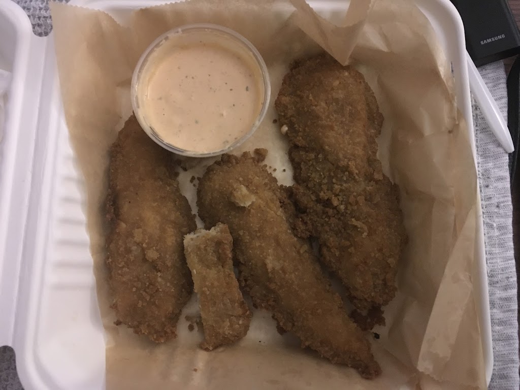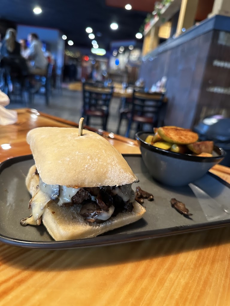 Really good food that is noticably made with care! The meatless mayhem (veggie burger sandwich) is hands down the best restaurant veggie burger. I subbed pesto for the Dijon on the sandwich. It was so good, especially paired with handmade onion rings and fried apples. The salmon with brussel sprouts and sweet potato planks was highly loved as well.