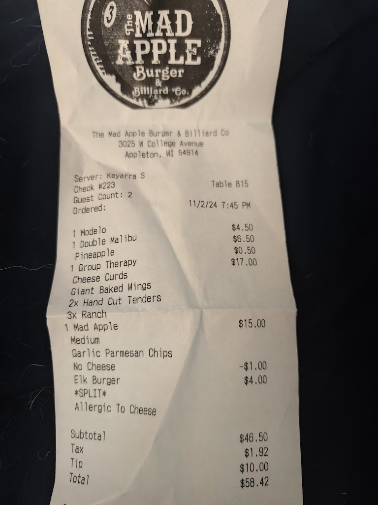 Keyarra gave us an amazing experience as well as scrumptious hot and fresh food! Someone should definitely give her a raise! We were very impressed and will make the trek back again from Stevens Point!