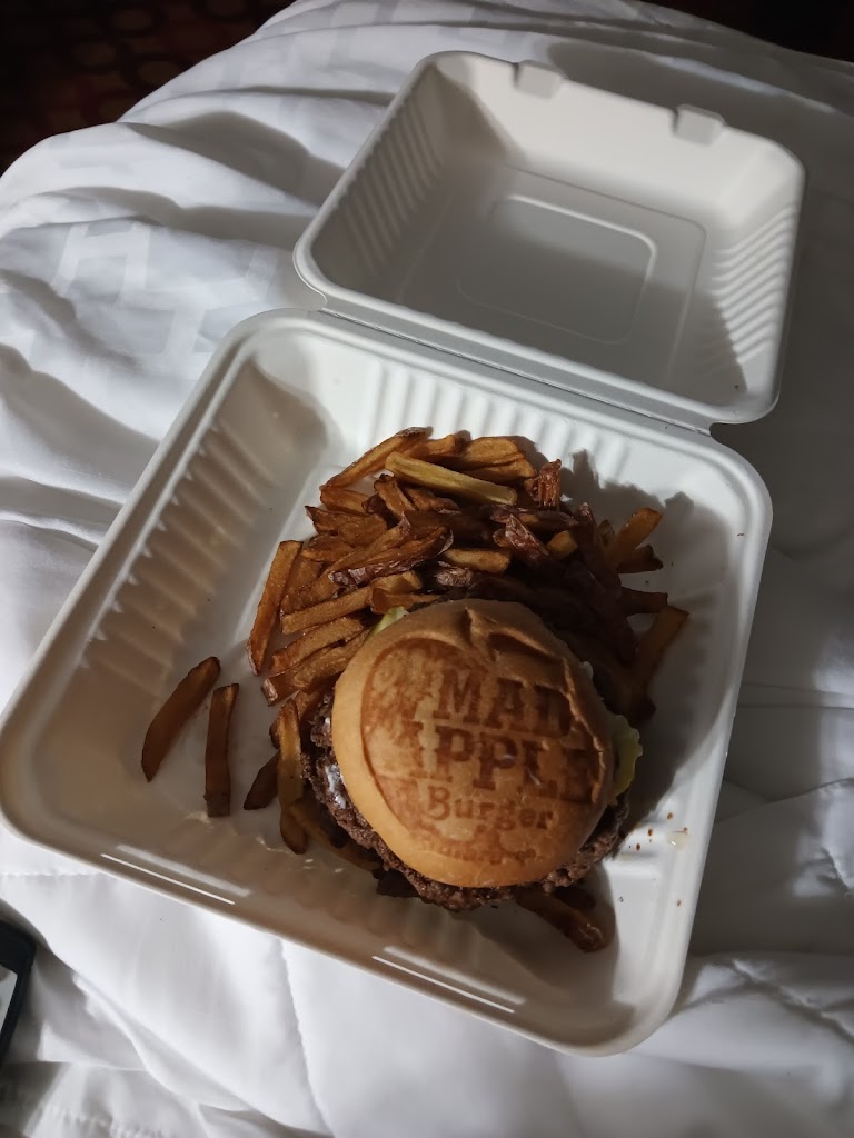Tried the mad apple burger but it was so salty I could only finish half. Fries were also salty, overcooked and soggy( that's just the way they make them there). Spent the next several hours with gutrot.Never going back