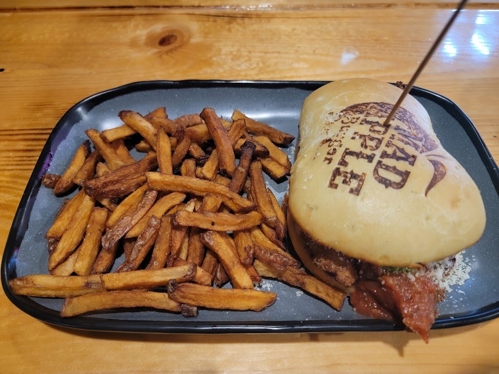 The mad burger was dry , ff over cooked and not warm. Pizza not much flavor.