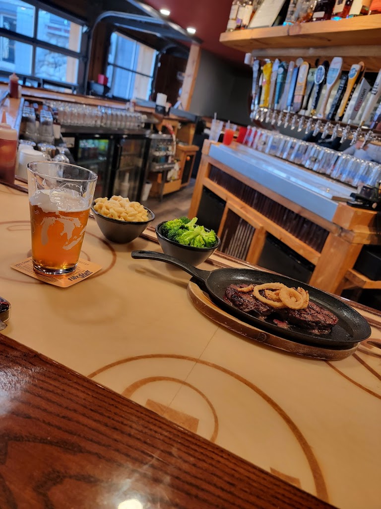 Stayed at the AmericInn connected to it. Planned the entire evening around coming back to the hotel late at night and eating here, because their Google Profile and website say they are open past midnight on Saturdays. But, they stop serving food, so we had to go back to our hotel room and wait an hour for over priced DoorDash. Their food might be good, but we literally couldn’t order it. Put the time your kitchen closes on your website, its basic information and could have saved us a bunch of money/trouble.