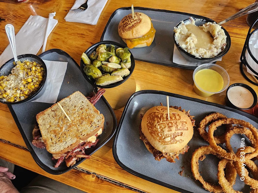 Service was minimal even sitting at the bar got the Mad Apple burger. Patty was dry, very little onions on it, and the fries were mostly bottom of the bag.