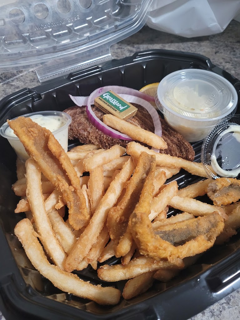 I had broiled haddock which was phenomenal. 2 pieces of fish, potato choice, slaw and bread. large amounts of tasty food with a good price. tables are set up for social distance. staff very receptive and kind.