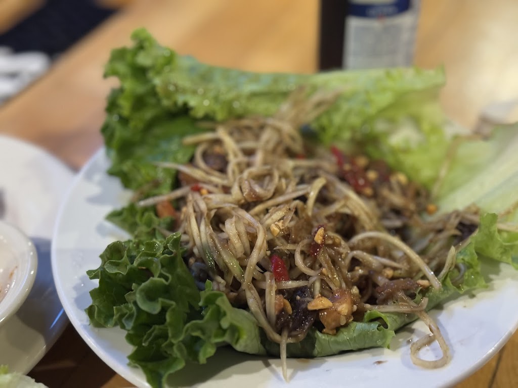 Papaya salad: very good. Flavor is good. I personally like thick cut papaya and this is good. Only thing i would say is to put a notch less tamarind. Its alittle overpowering through the flavor. 8/10