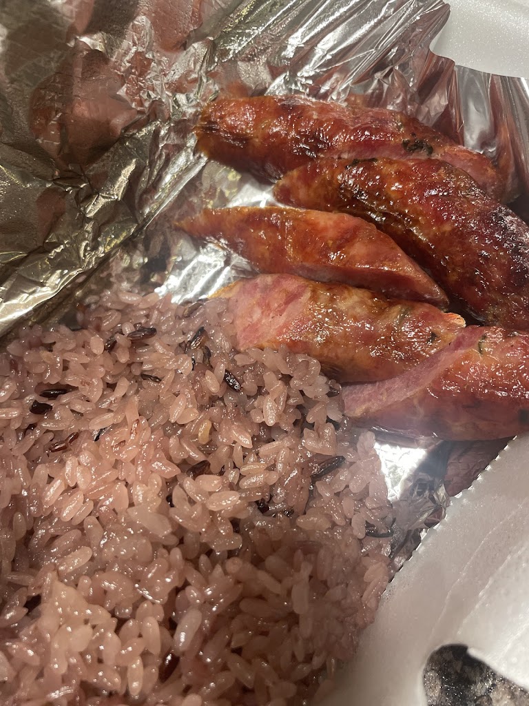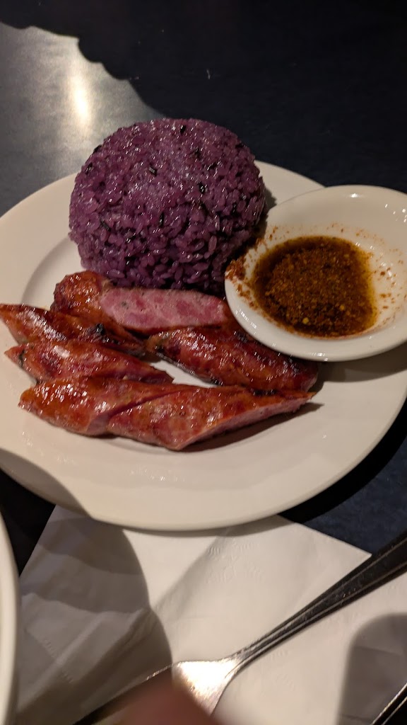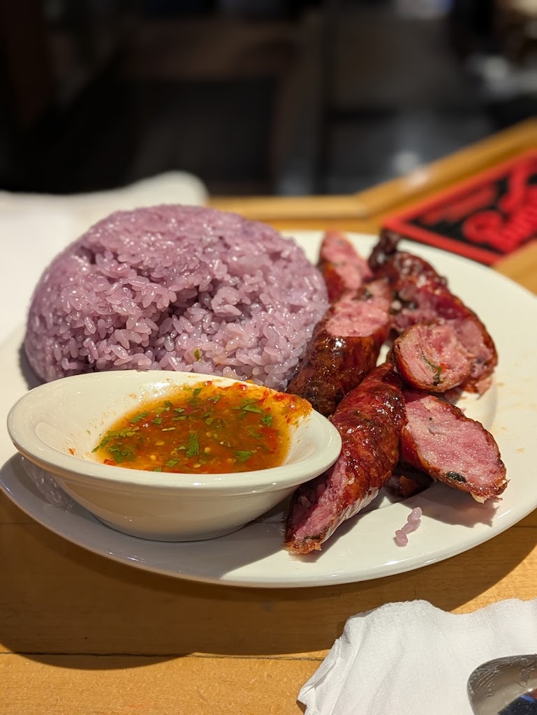 I had a Beerlao brand beer and the sausage and sticky rice. The sausage was really flavorful and spicy and the sticky rice was a great pairing.