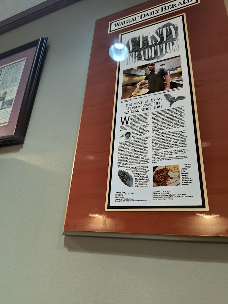 Great slice of Americana in downtown Wausau! Our server Daisy was spectacular, very attentive and made us feel at home. Our food was classic diner fare, prepared perfectly and very tasty! Got to chat with Joe the owner as. If you haven't tried the Mint, what are you waiting for????