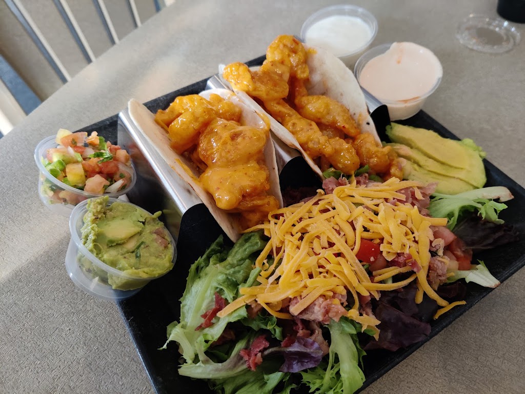 Relaxing, beautiful location and atmosphere. Very yummy food. My bang bang shrimp tacos were a tad too saucy, but other than that... Excellent!