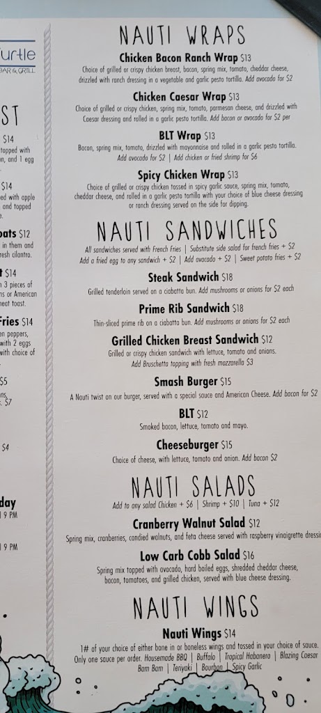 Overall a good experience for trying the Nauti Turtle on a whim. Live music had the patio very full but we were seated just inside the open doors and could see and enjoy the music quite comfortably. Food was good and service was prompt and friendly as well as attentive.