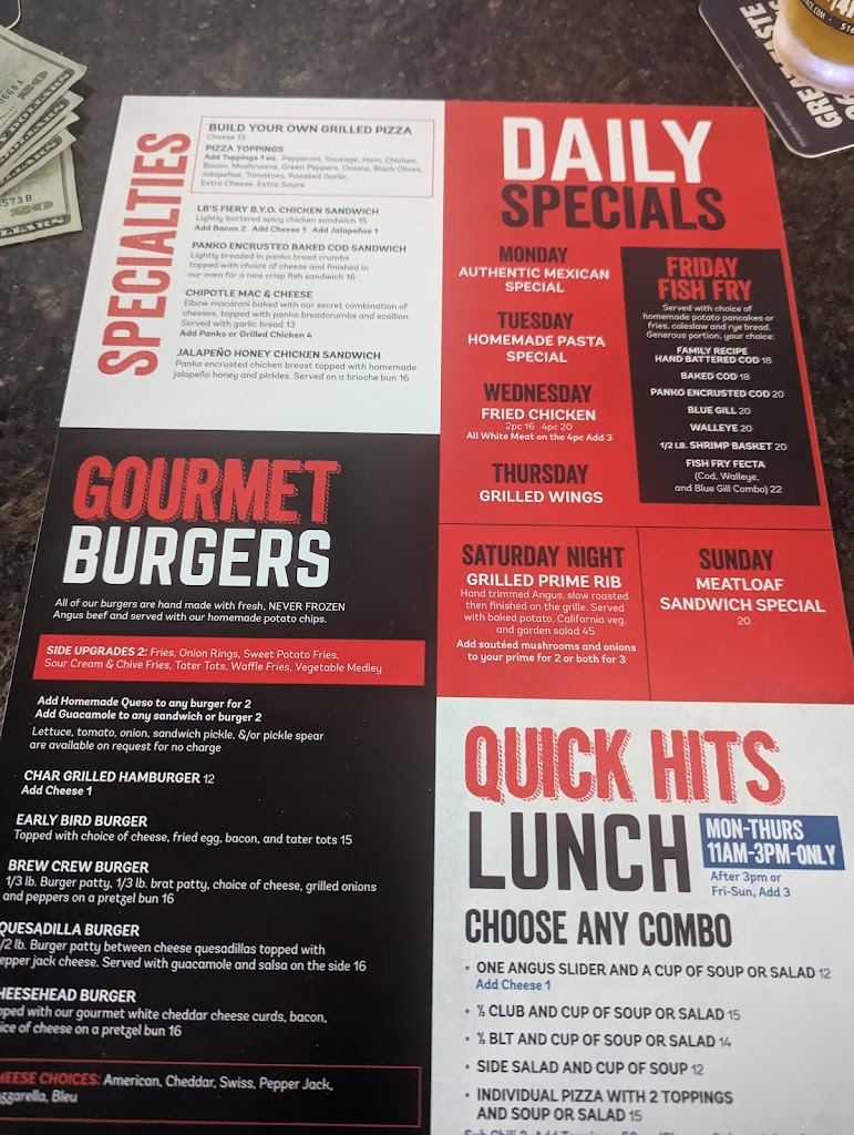 Way too overpriced, food was TERRIBLE! The cheese curds were the only thing somewhat good, our meals and everything was completely terrible. The waitress messed up the wing sauce and I said something politely and she responded “well you’ll like it anyways” and walked away… (we didn’t like it!) the staff was rude and didn’t refill drinks etc. never again