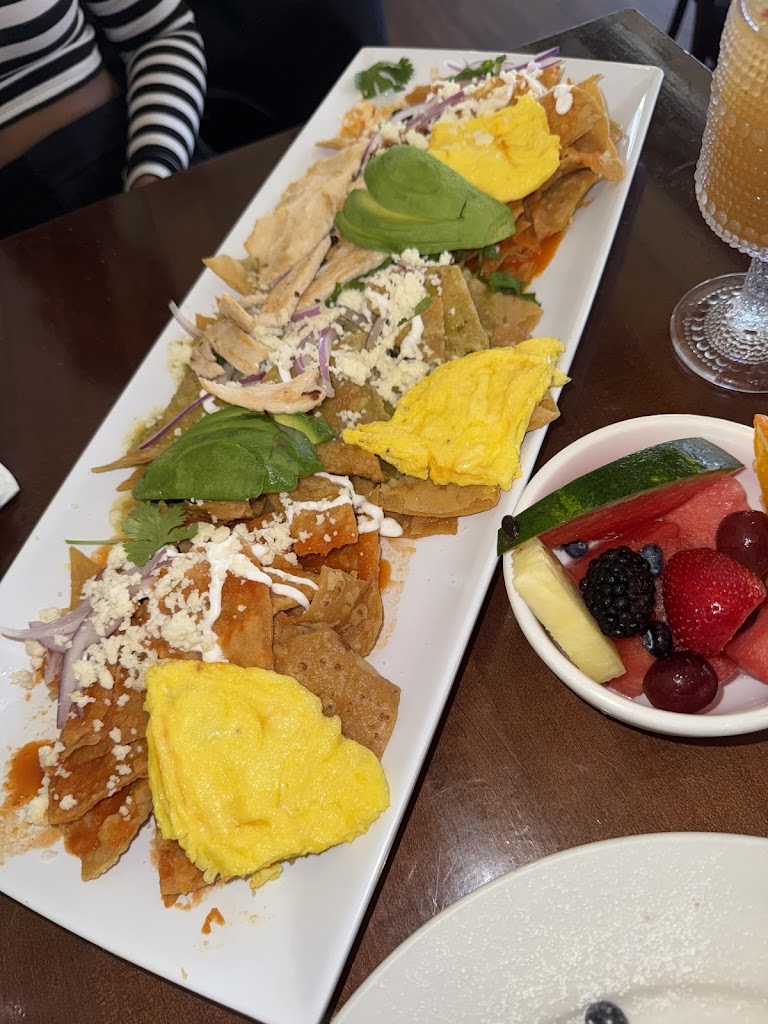 I ordered the avocado toast with scrambled egg on top. It was delicious. I'm a vegetarian, so I appreciated the many vegetarian options on the menu. The jamaica drink (made with hibiscus petals) was delicious and refreshing. My sister loved the citrus-y salad dressing and the red salsa and green salsa that came with her chilaquiles. Highly recommend.