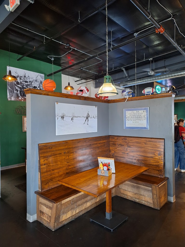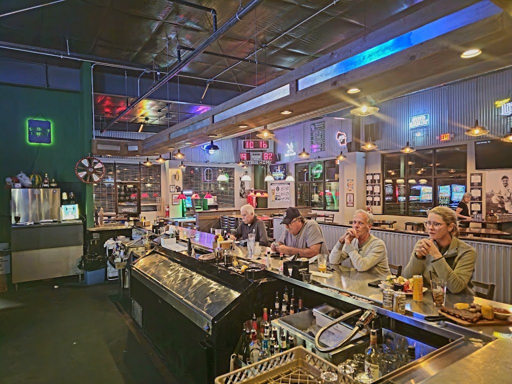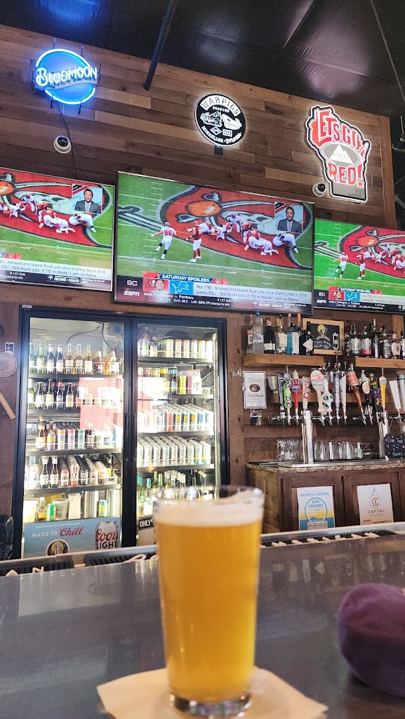 A large sports bar with a small crowd. Fast and friendly service with better than average food for a sports bar. Also a pretty good selection of brews. If you are looking for a place to watch a game this would be a good choice.