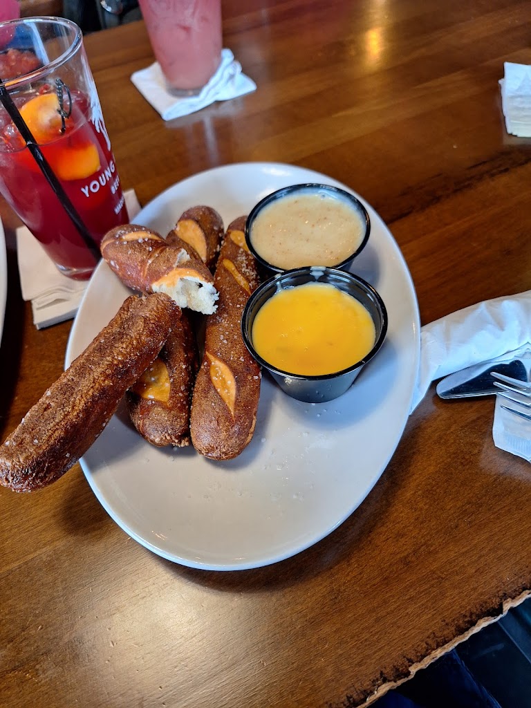 Great food and service. Try the garlic spread and goat cheese burger on a pretzel roll, it's amazing! Excellent crispy fries too!