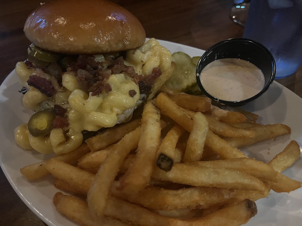 Had a macaroni and cheeseburger and fries on the outside patio. There were two nice heaters going as the sun set. Great atmosphere and the food was pretty good too.