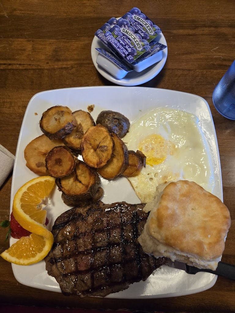 Breakfast was very good. Steak/eggs and pulled pork burrito.