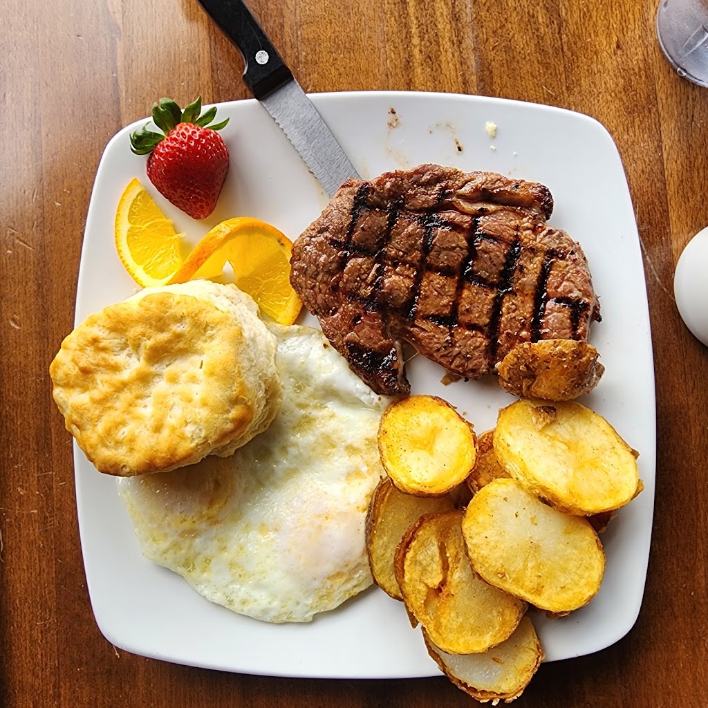 This is a very nice restaurant. The breakfast, steak and eggs were delicious. Oh, the biscuits were so fluffy and delicious. The drinks were do good. Our server was so nice.