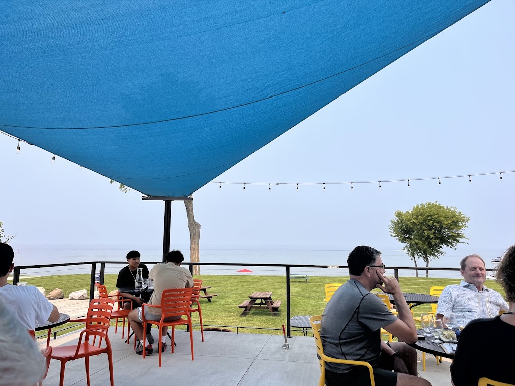 Stopped for breakfast on the way to Door County. A beautiful restaurant inside and outside. Beautiful patio seating on the Bay. Food was amazing. Service was excellent. Friendly and fun atmosphere. Will definitely be back!!