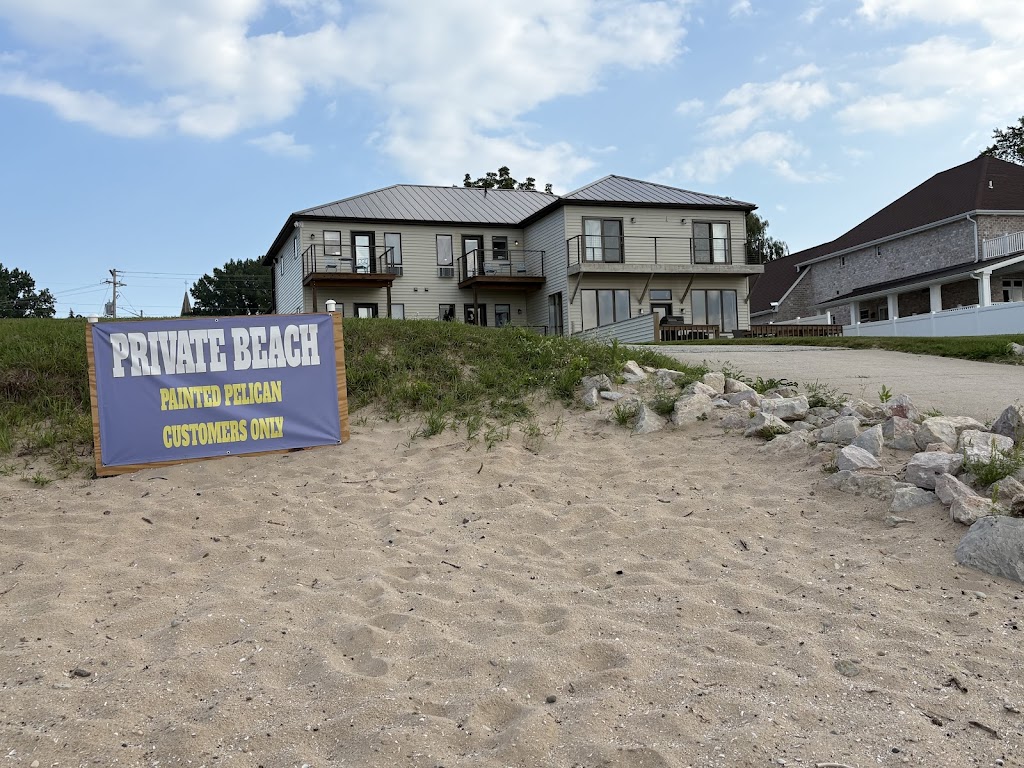 My daughter (11yrs) and I came up from the Chicago suburbs for our annual girls trip. We were so happy at the Painted Pelican! First, the renovations are really well done. From when we pulled up outside to the rooms and bathrooms inside things were clean, fresh and well appointed. We went down to the beach (just 25 yrds or so from the parking lot) every night to watch the most beautiful sunsets over the lake, look for sea glass and dance on the clean sand. The outside of the building is modern and the parking lot is in good condition with reserved parking spots for each room. The area was quiet and felt very safe. Across from the parking lot is their restaurant, coffee shop, bar area. We heard great things about the restaurant but only were able to try the walk-up coffee window. Very convenient to grab a yogurt parfait and pastry before heading out!