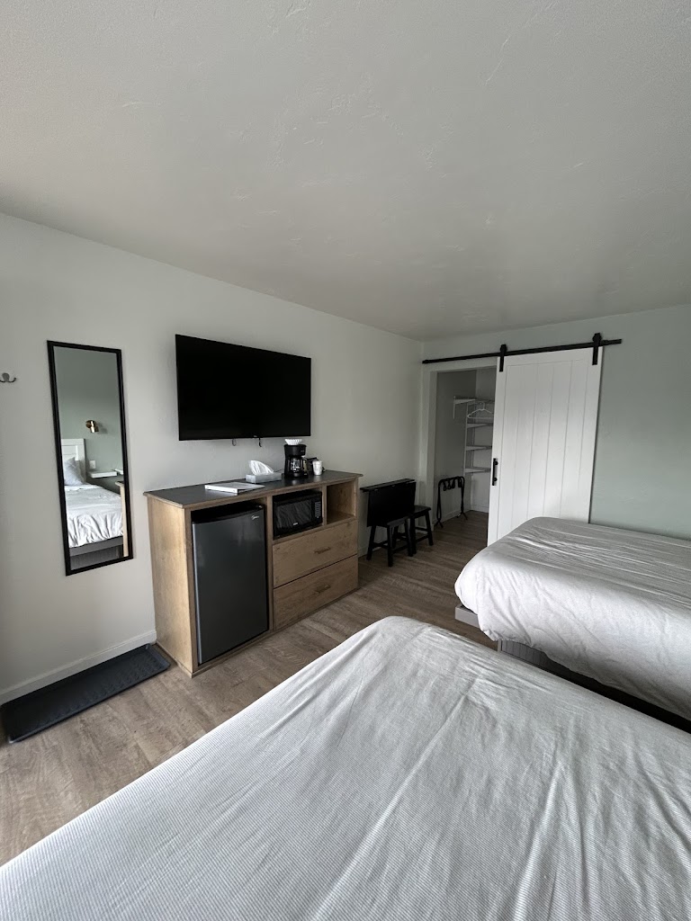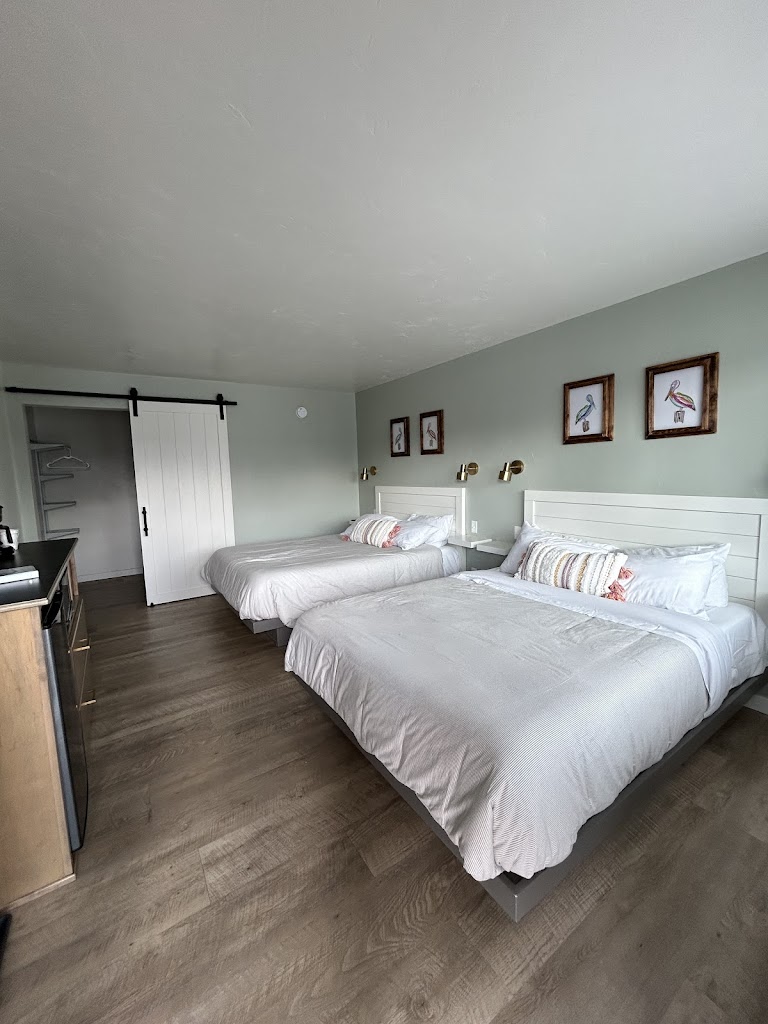 The rooms are excellent.! We had stayed in this motel previously to the new ownership and wow, what a difference. The remodeling was tastefully done. Beds are very comfortable. Love the coffee for the morning :) The only downside is when we tried to reach out to see where to park our boat we didn't get a response. But when we arrived we found out info in the binder. It would be nice if there was parking right there for boats instead of across the street or on the street. Oh, and the beach looks great for hanging out.