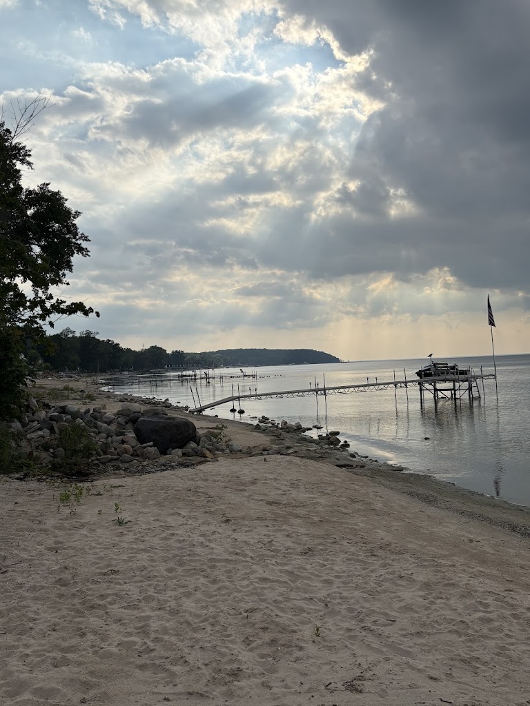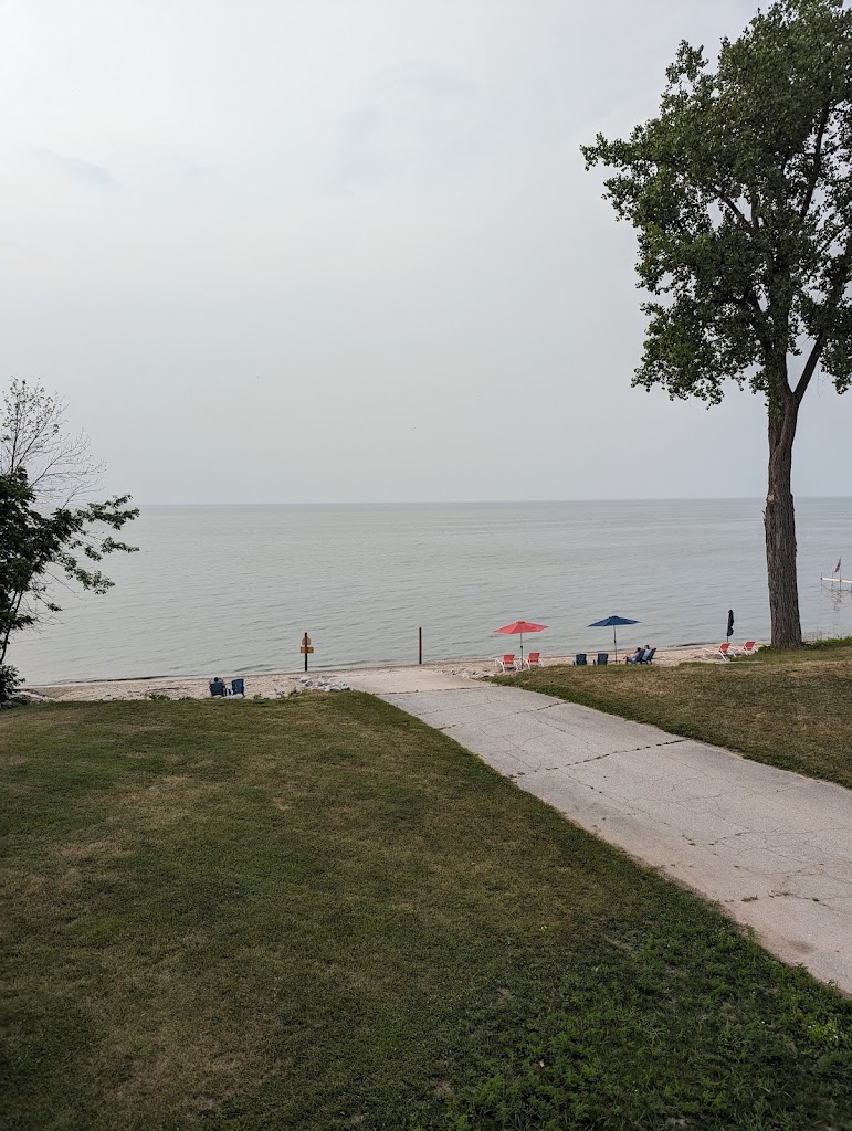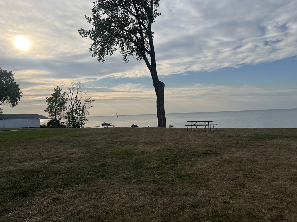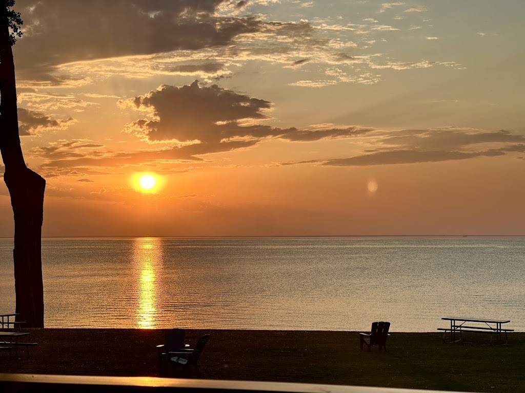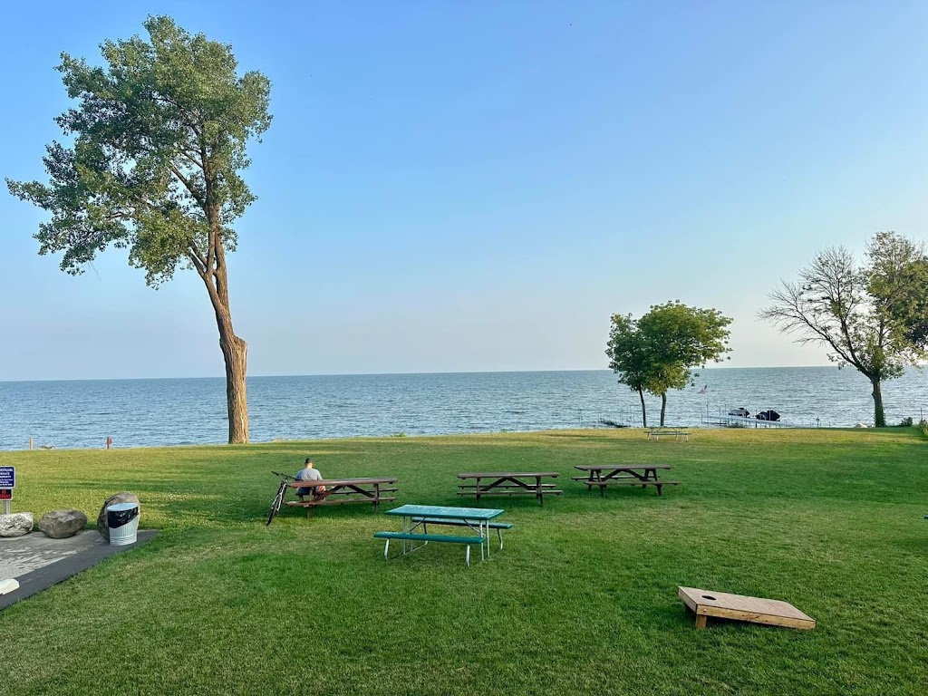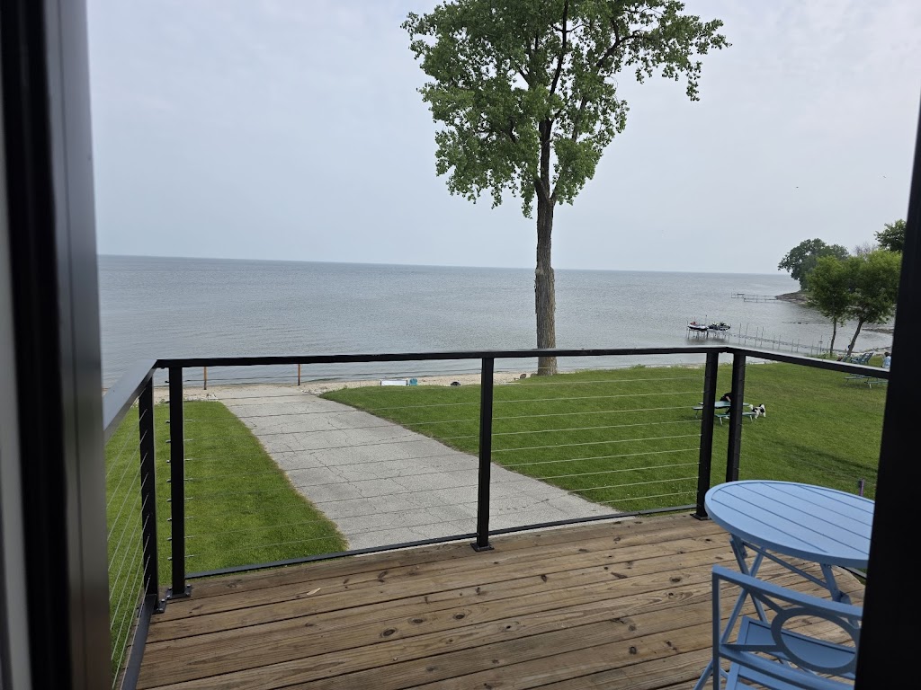 Door County accommodations were expensive and booked. We found this property 20 miles out on the way to Door County and booked it. When we arrived we were surprised to find it was right on the beach of Green Bay. The sunset was beautiful. There was also a local ice cream place across the road with a couple dozen locals standing around eating ice cream. Our room was clean and up-to-date. The check-in was via email with a lock code. The owners do live nearby, though, if needed. This is a private business and they are currently building a restaurant next door. If you are looking for a nice place to sleep, this place is great.