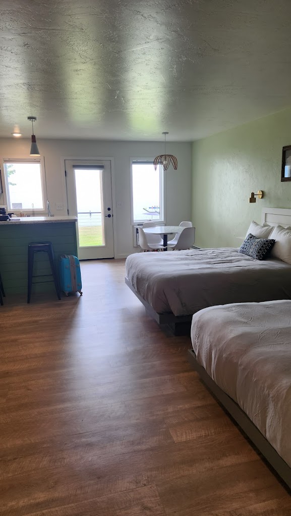 Fantastic accommodations, providing clean, comfortable, modern, efficient design and layout. The motel units offer panoramic views of the Bay combined with substantial grassed grounds, sand beach, picnic tables and lounge chairs for enjoying this peaceful setting. Interesting views from your room of the recently remodeled state of the art restaurant with large outdoor dining and music venue. The atmosphere feels like you are at a private resort. Fun place for sure.