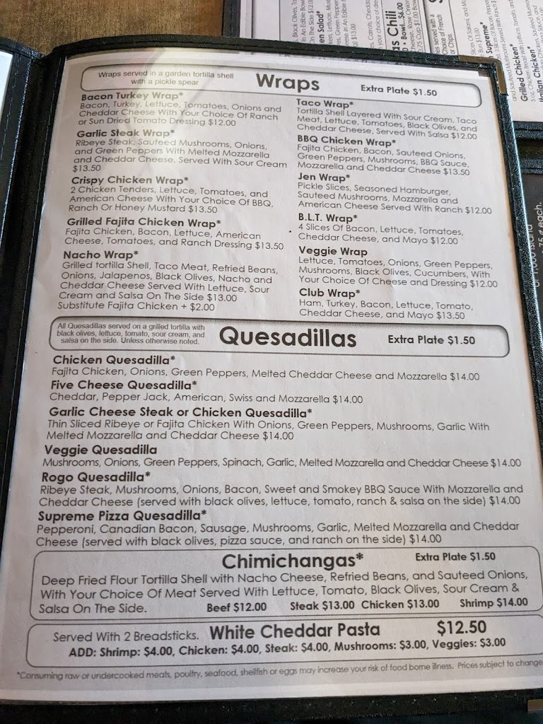 Had the "Chef's Special"...beef tips & noodles. Huge portion of tender beef with gravy over noodles. Will look for this again next time we're in the Falls