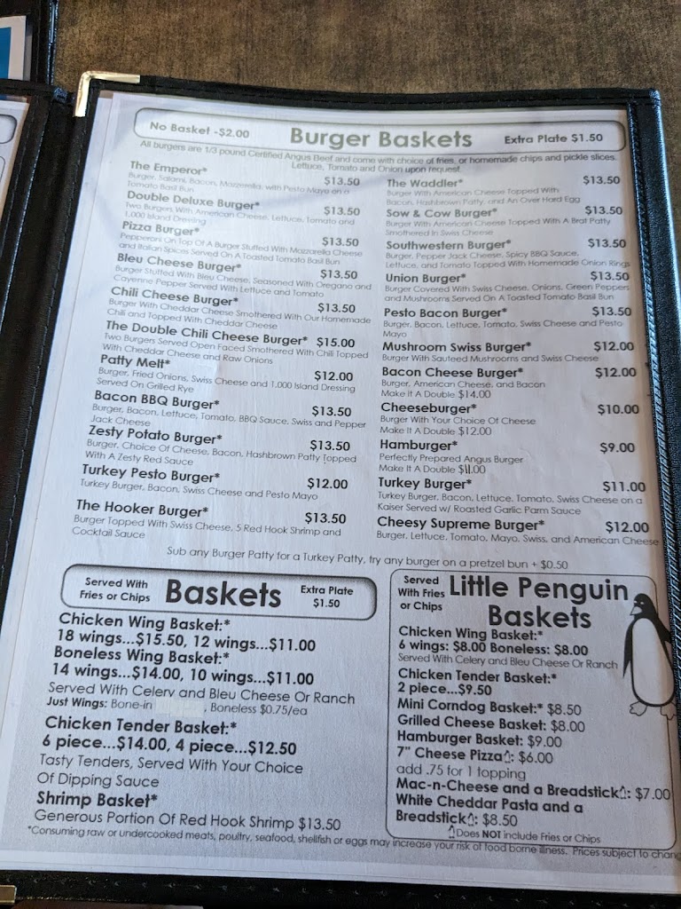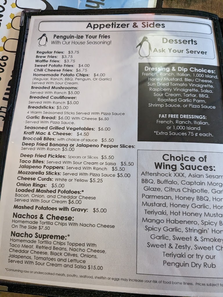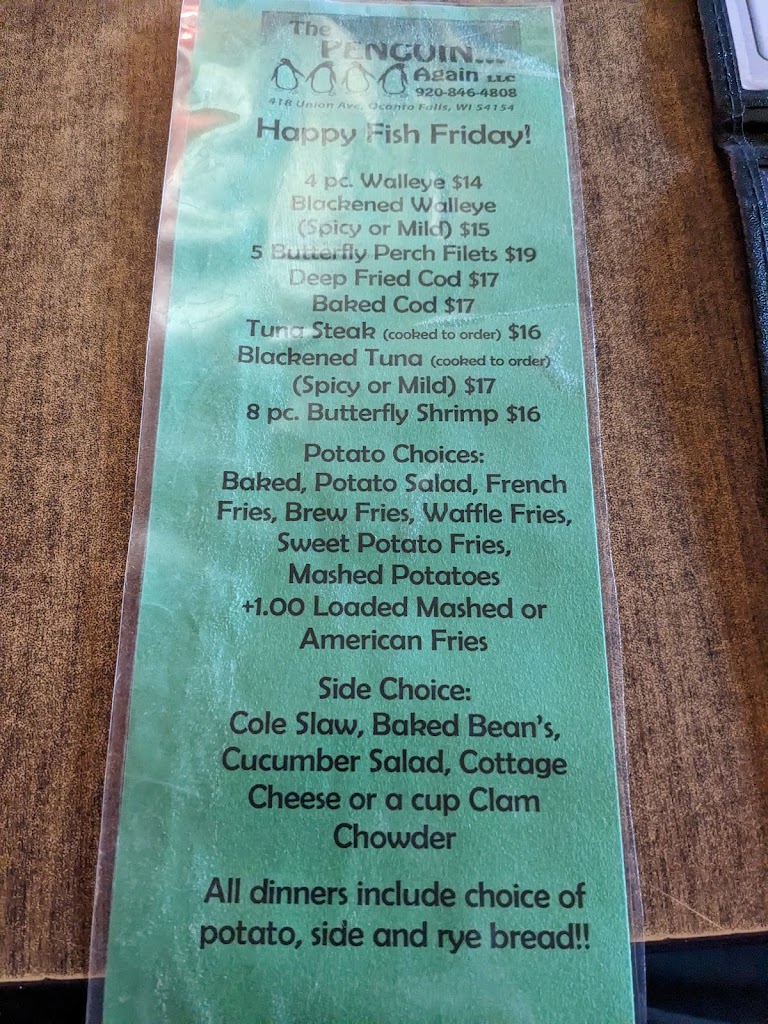 My brother was telling me about the spot how you was up to OcontoFalls for a Funeral in that they had ate food at the penguins I'm very intrested in making the road trip and trying it