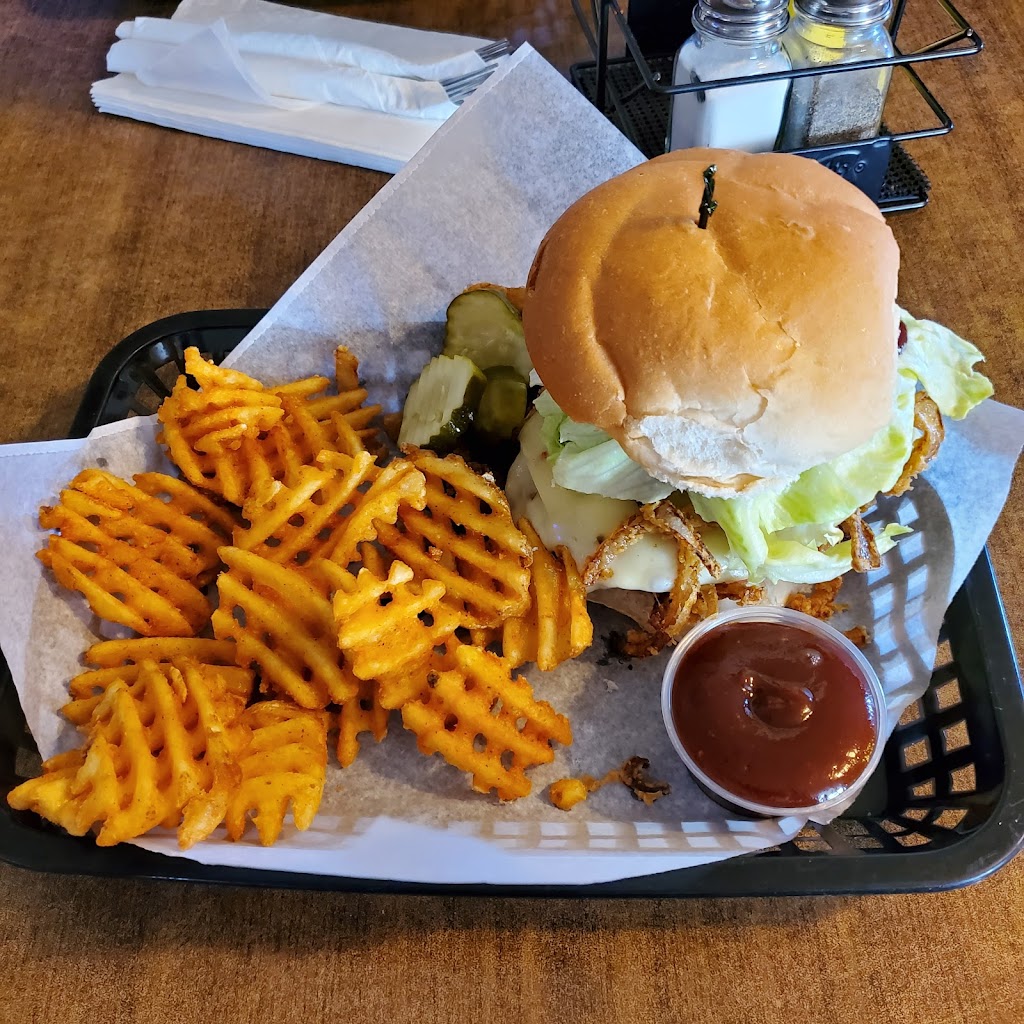 Love their food. Different burgers toppings. Servers are friendly and good. It has a small bar but is family friendly.