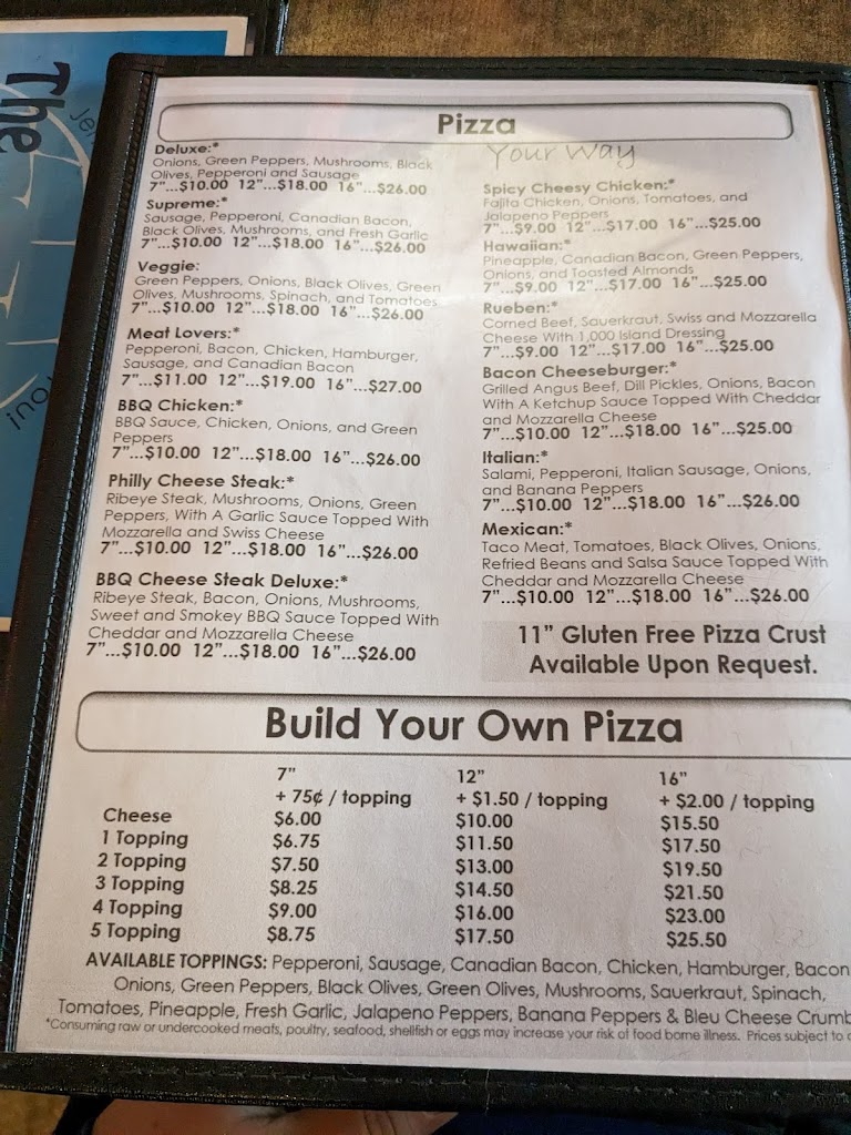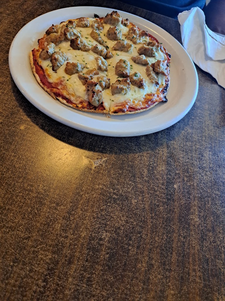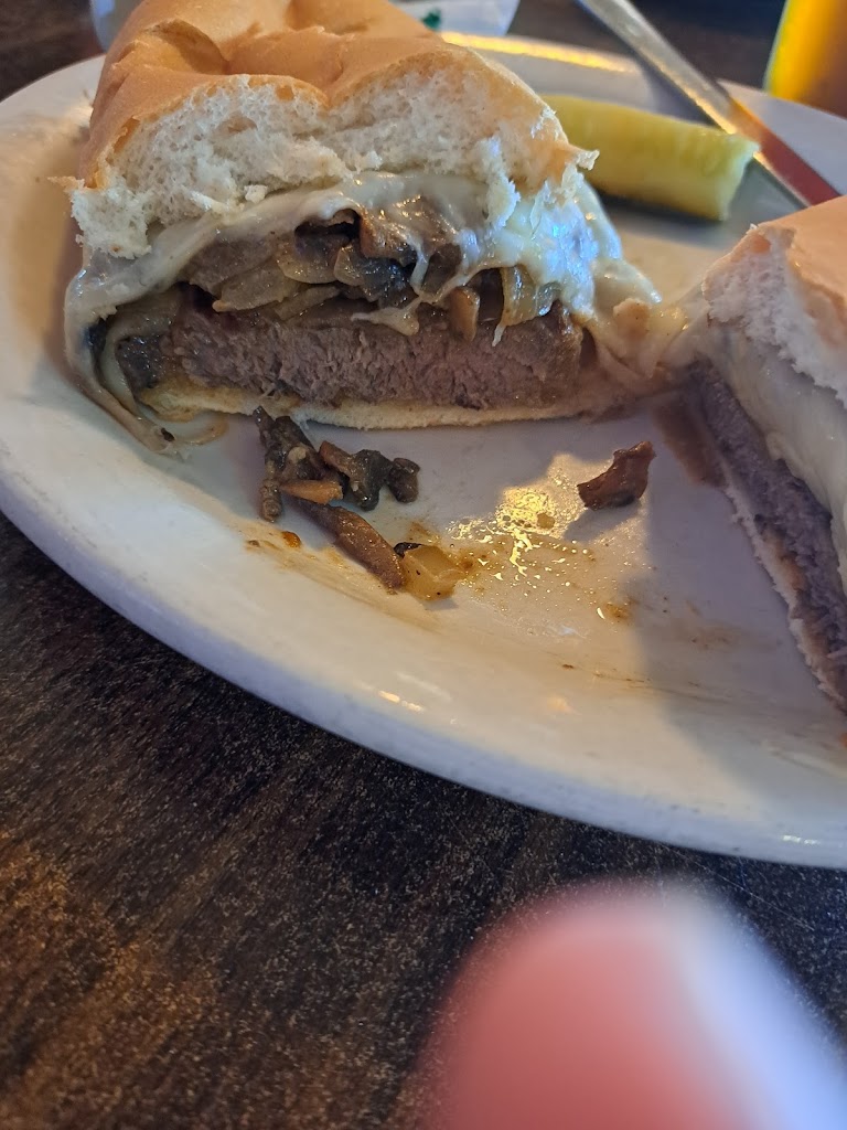 The steak sandwich was amazing. It had lots of swiss cheese, mushrooms, and grilled onions, and it came on garlic bread. Steak was cooked perfectly. We also had a sausage pizza and brought home a pepperoni pizza. Pizza sauce had good flavor. We will definitely be coming here again when we are in WI.