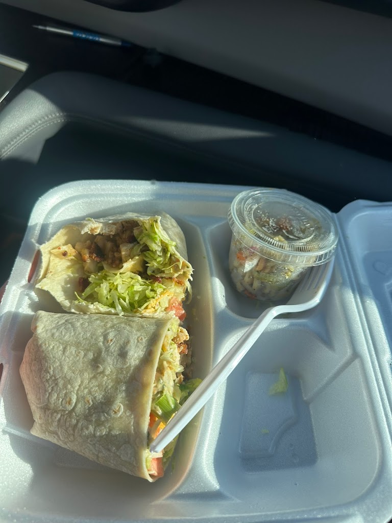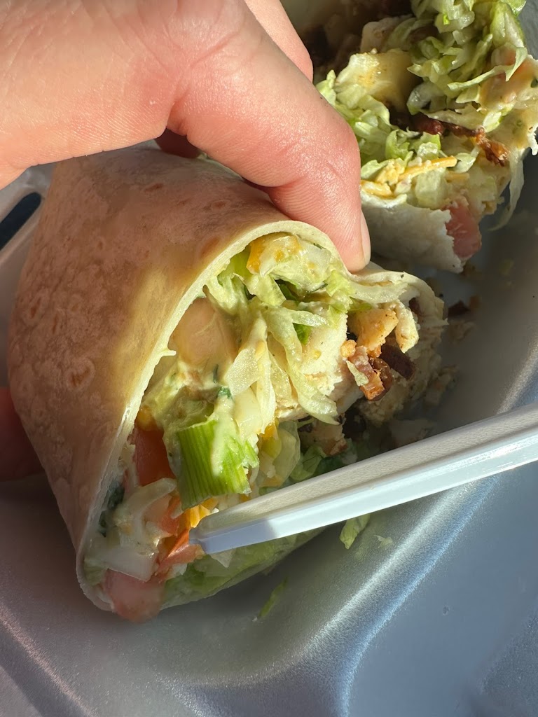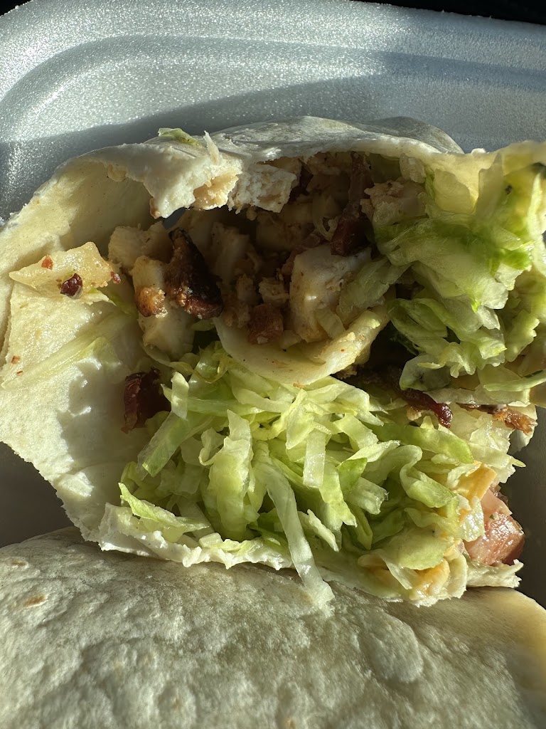 I got the guacamole chicken bacon wrap- WHAT A SCAM. I didn’t read the fine print and realized upon my first bite, that there is NO ACTUAL GUACAMOLE ON THIS WRAP. It’s guacamole mayo- overall, it was very, very bland. Pasta was mid and chips came in a weird, greasy tied bag that made me uncomfortable.