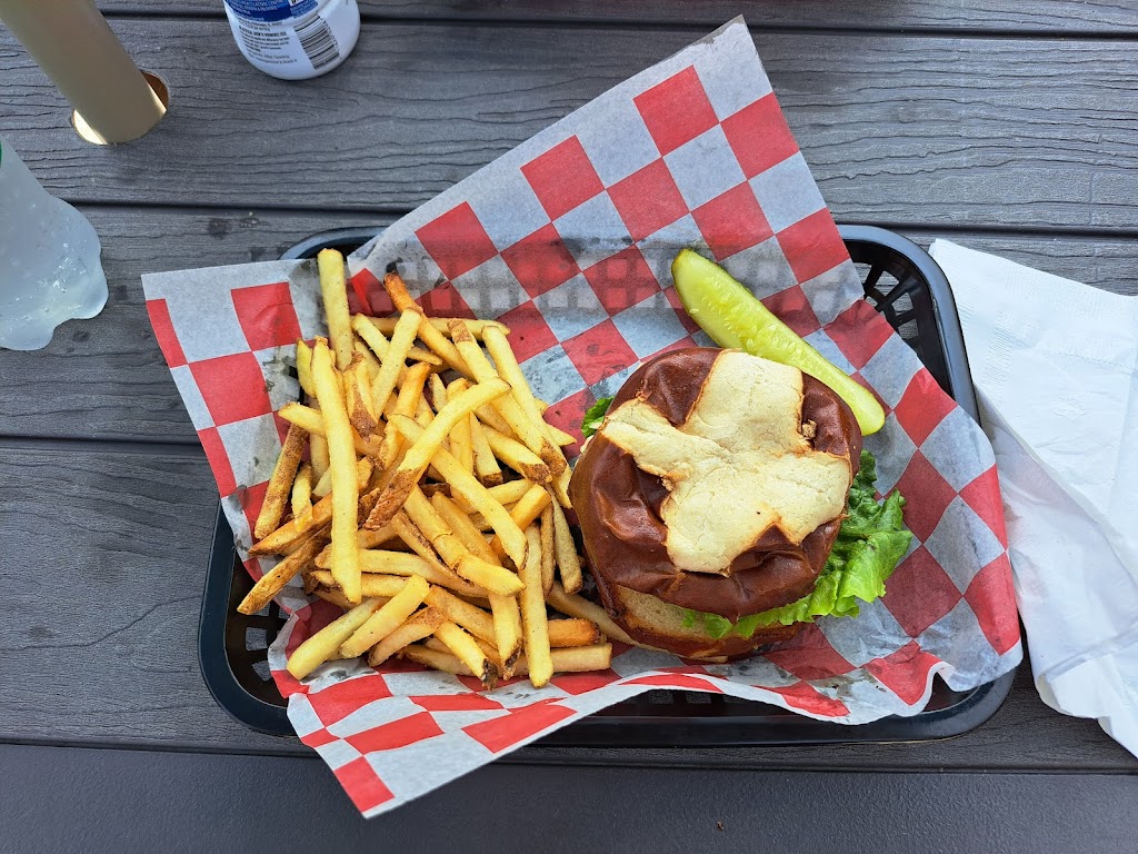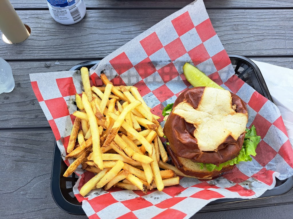 I ordered the beyond burger, and it was absolutely incredible. The fries were also very well seasoned. The service was phenomenal, and the staff went out of their way to offer water for our dog. I'd definitely eat here again.