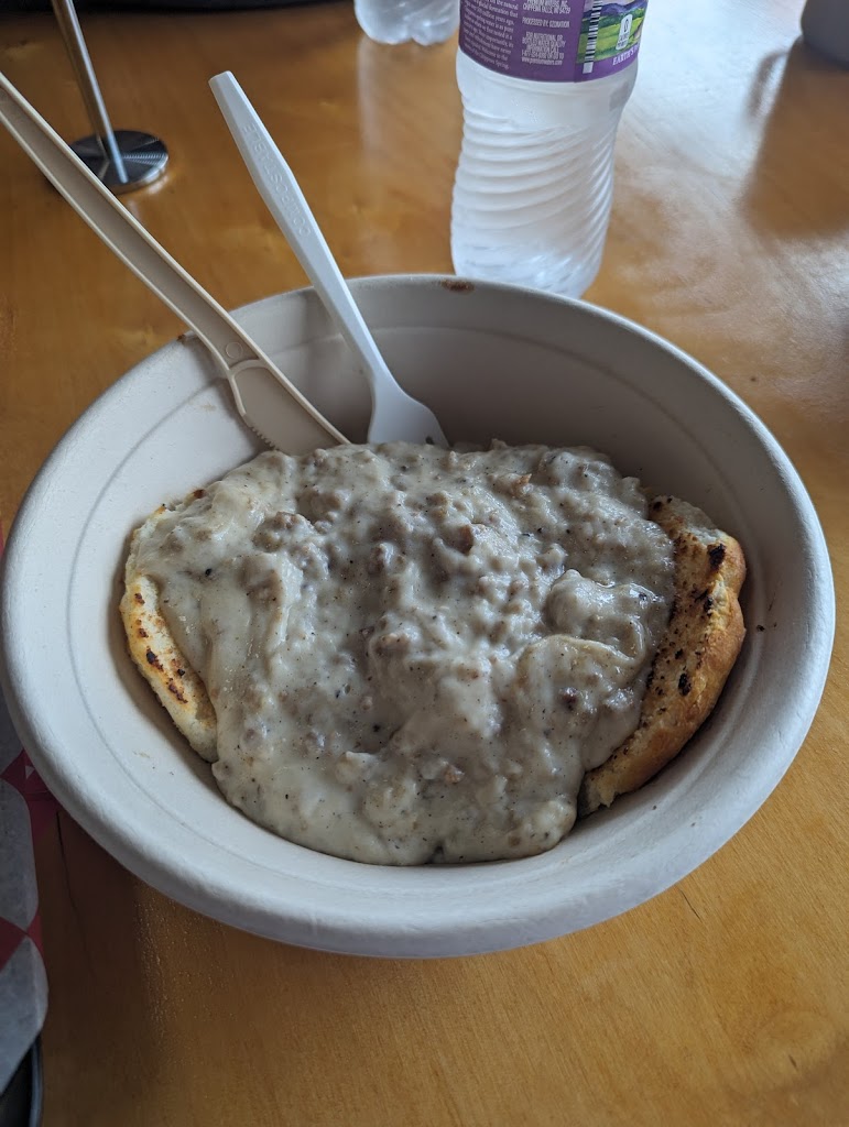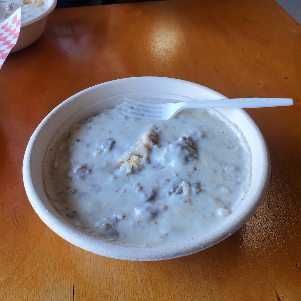 We had a awesome breakfast. We had the biscuits and gravy. It was huge but awesome. The staff was very nice. It is at the front of the island by the car ferry.
